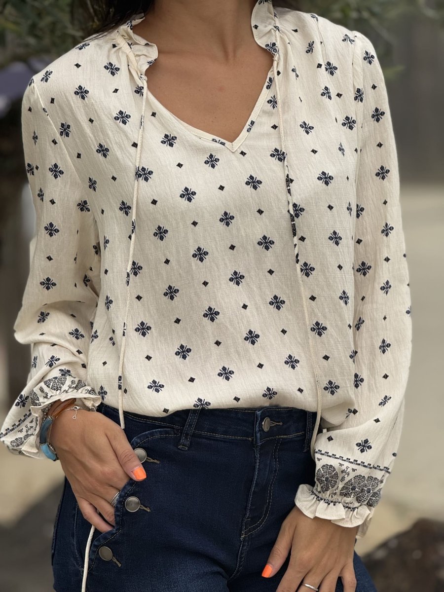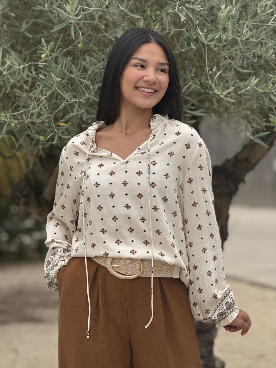 - BLOUSE MOTIF trefle et losange nœud devant