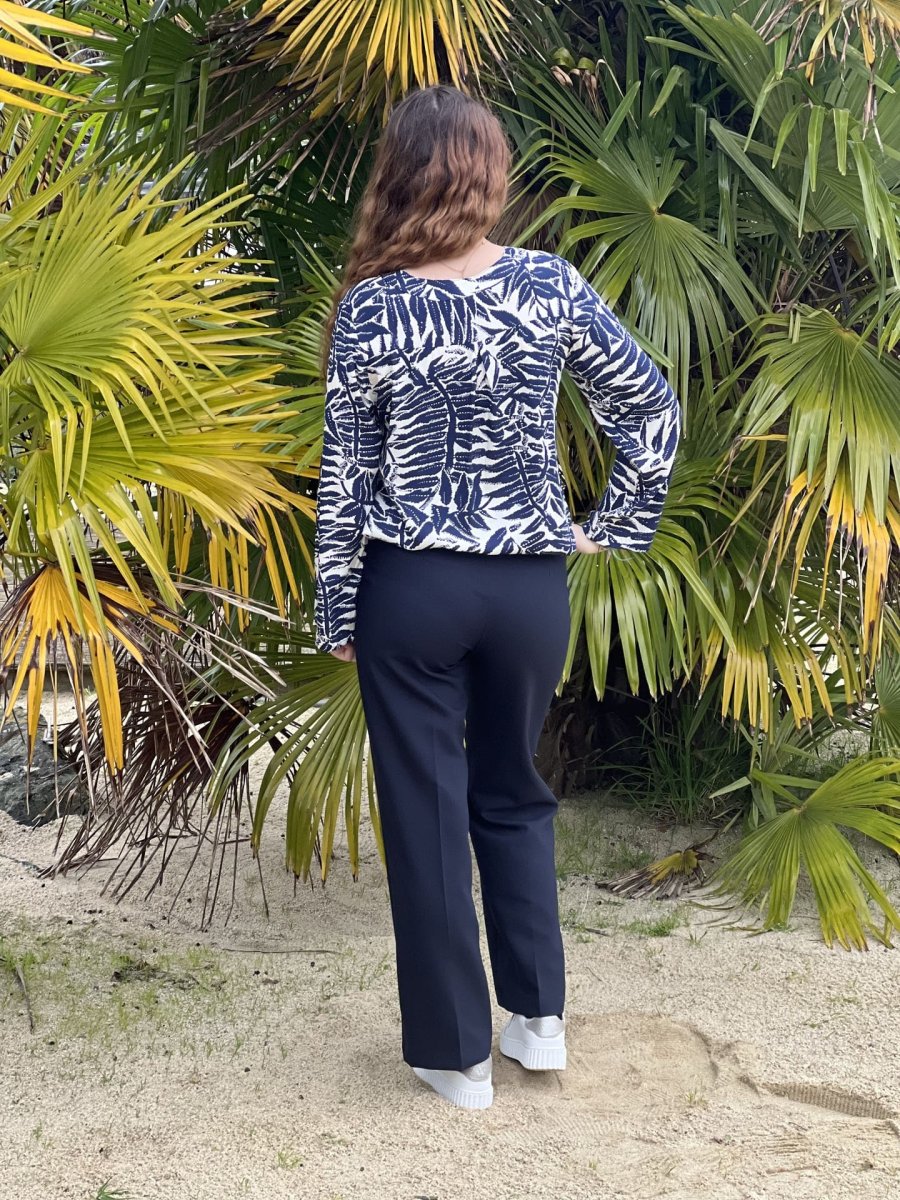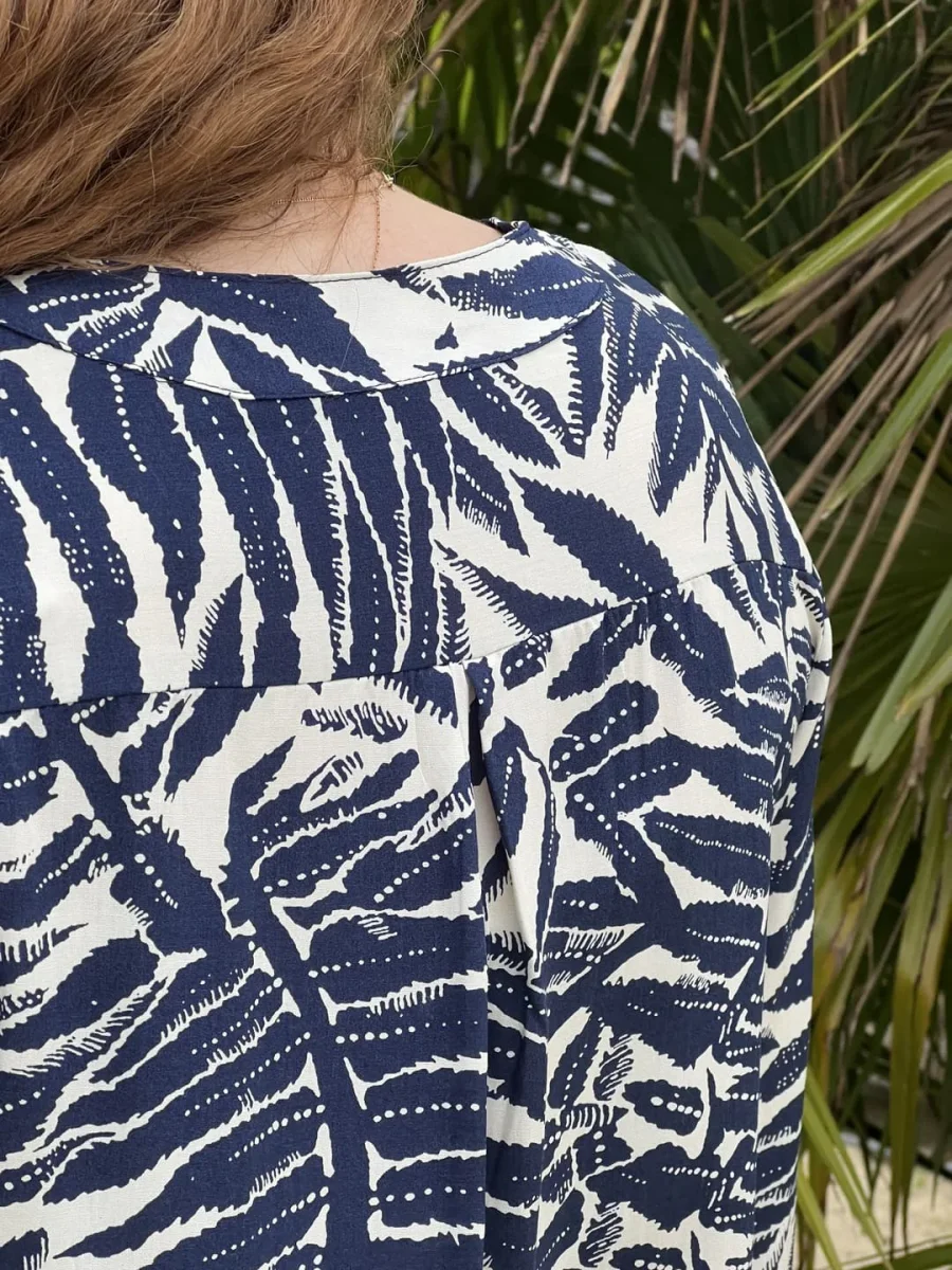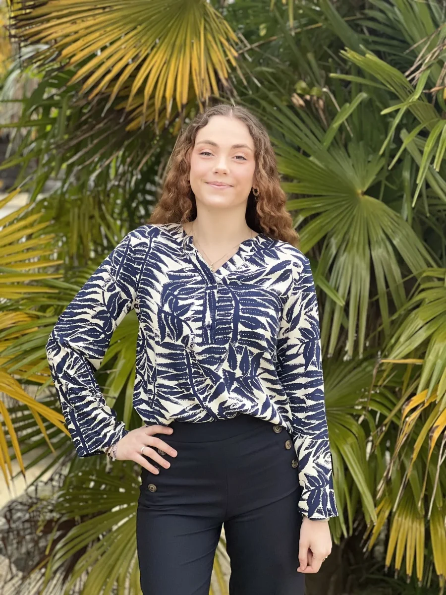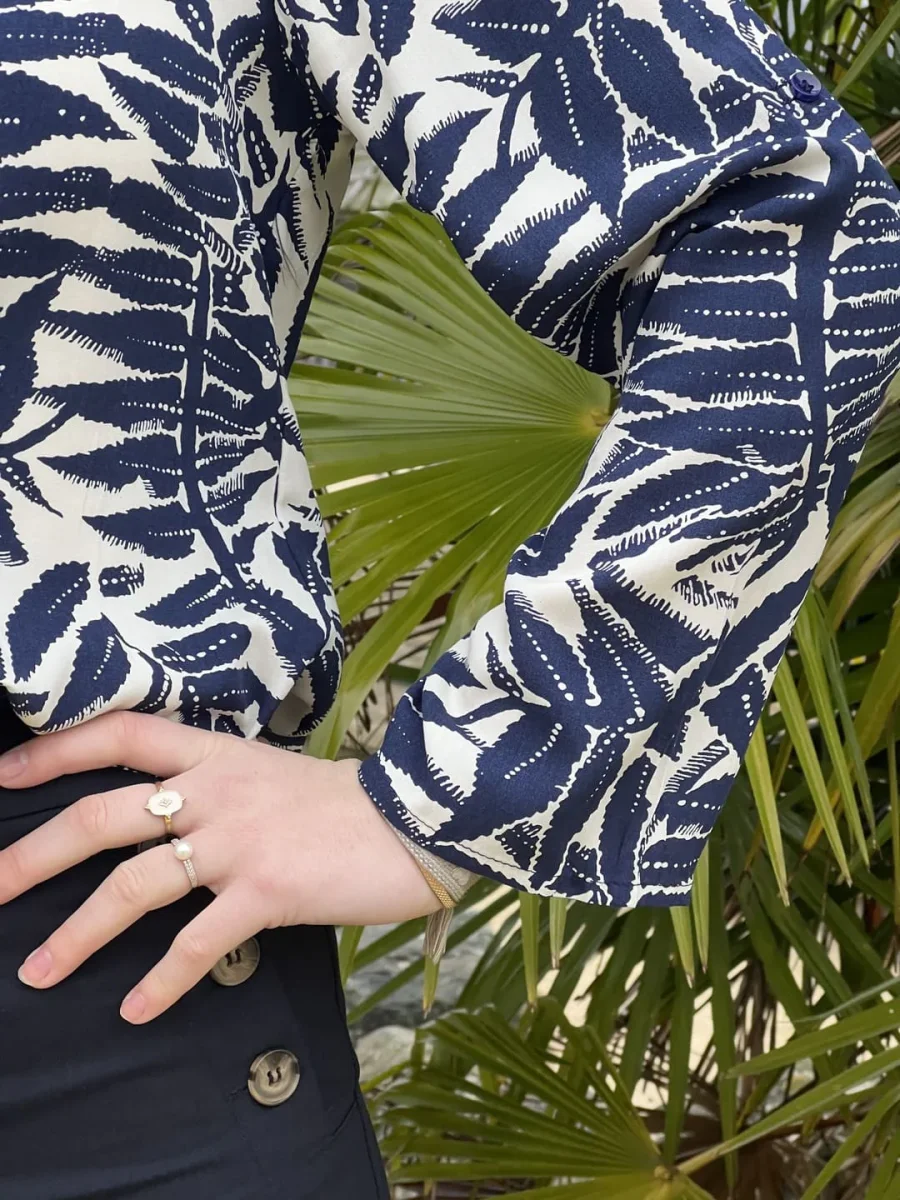 - BLOUSE A ML COL V – IMPRIME FEUILLAGE