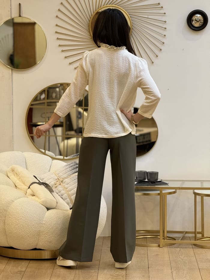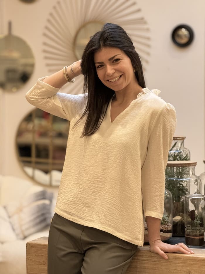 - BLOUSE à ml col v froufrou uni