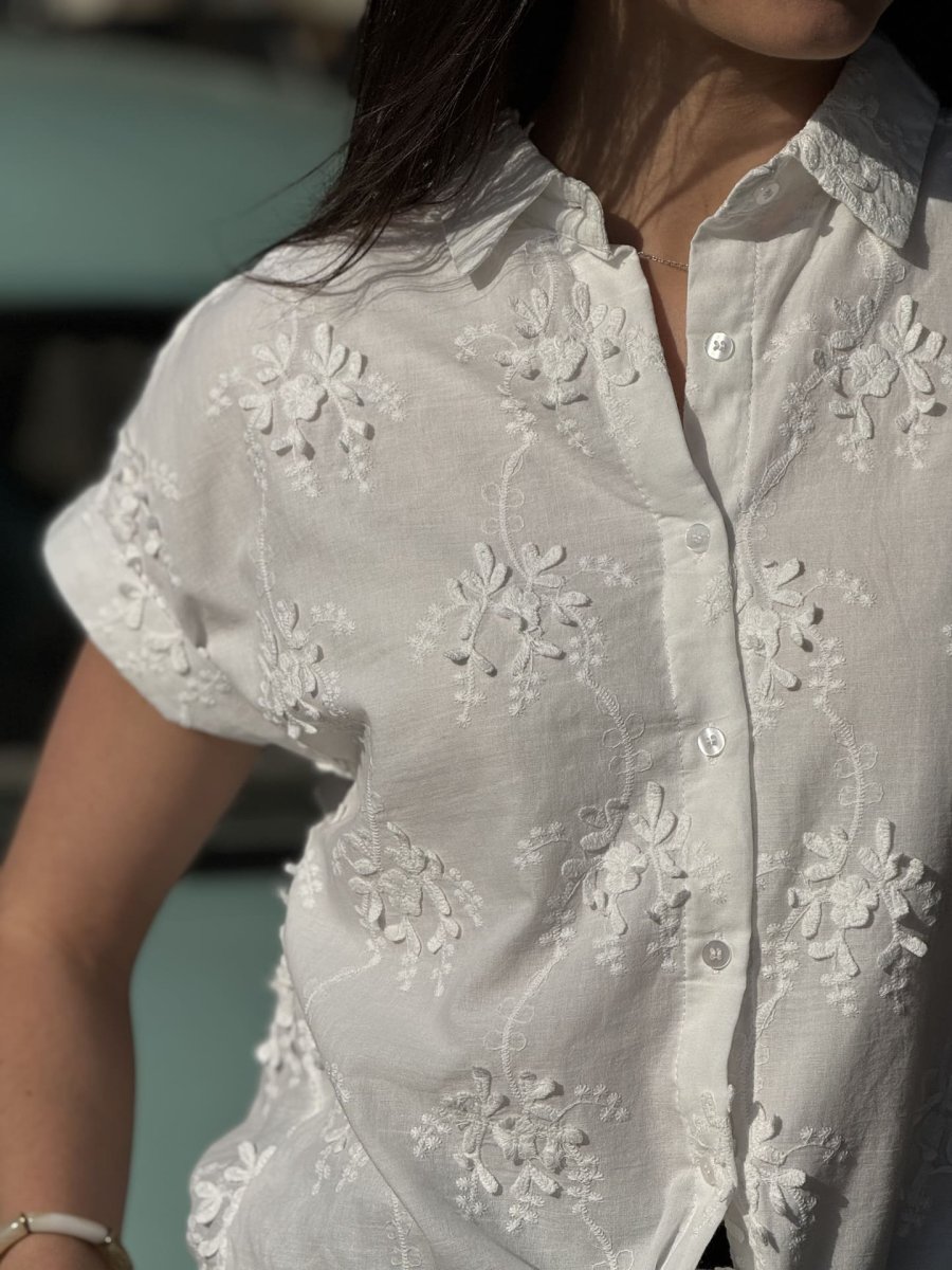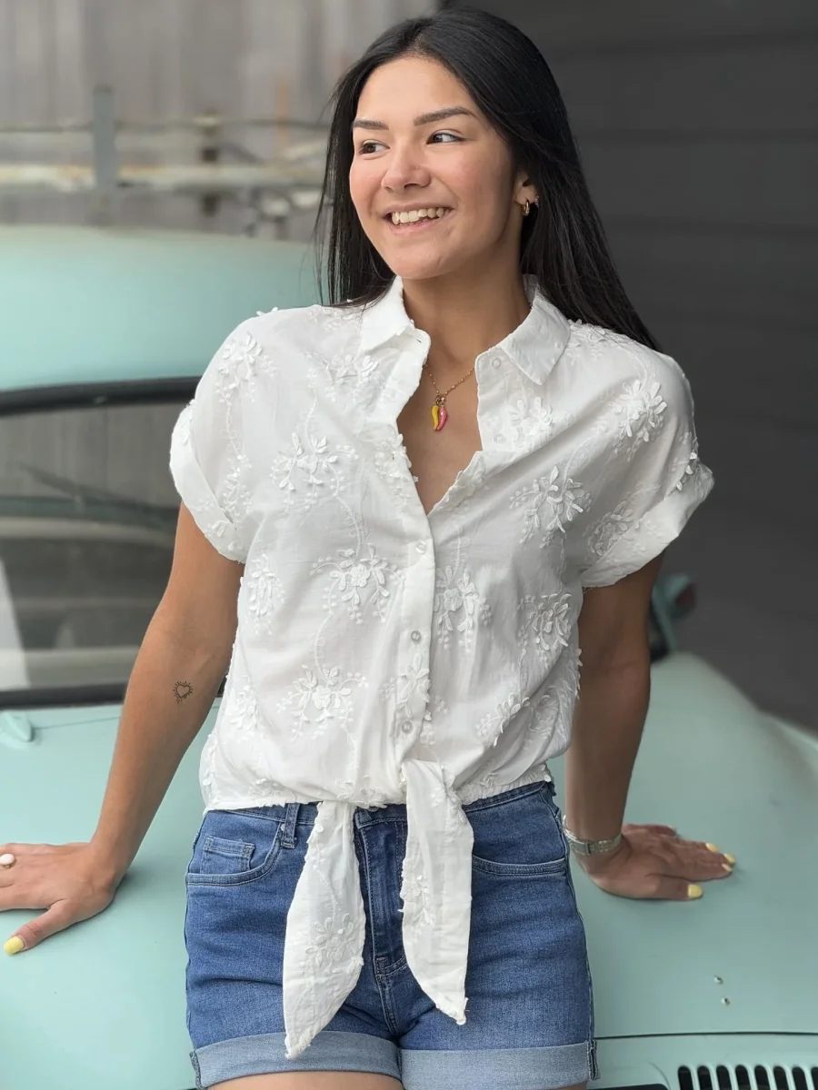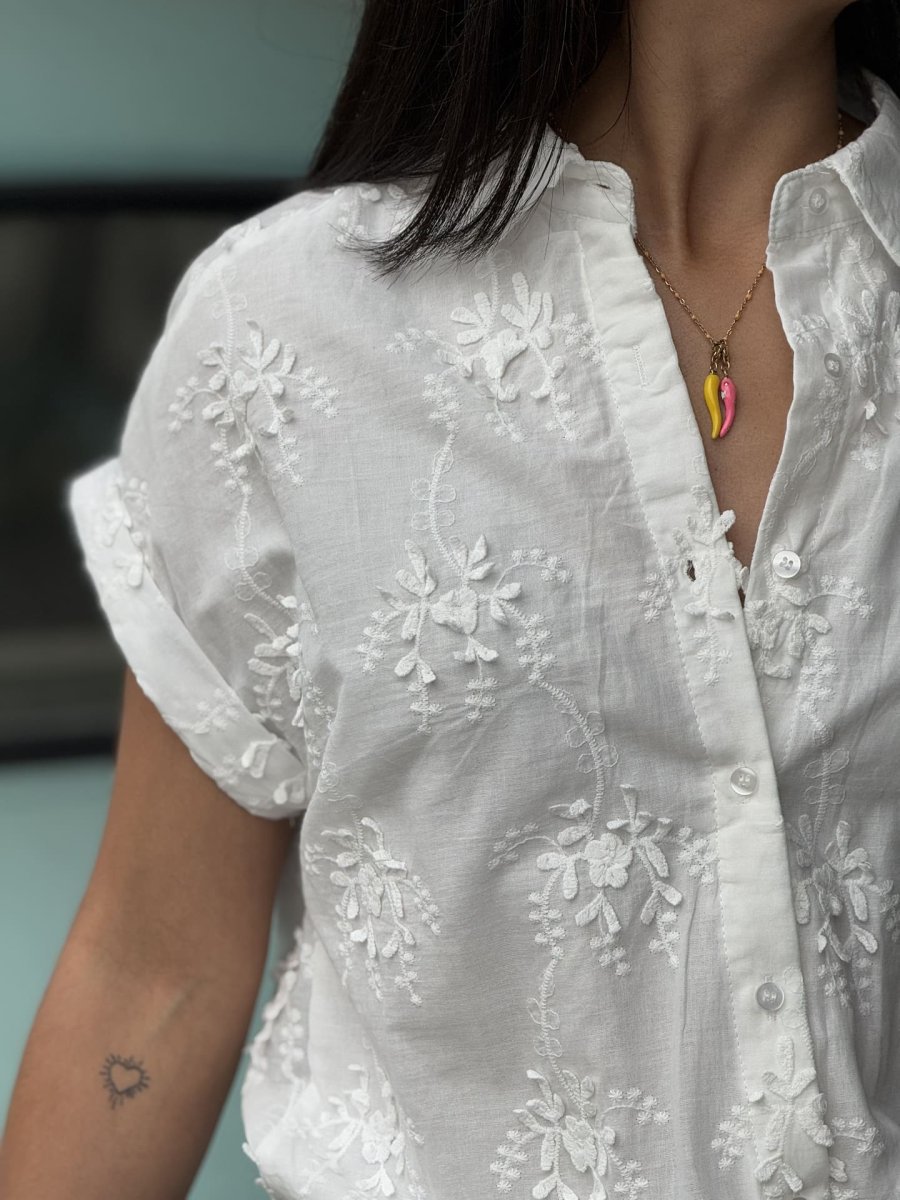 - CHEMISIER à MC BRODERIE ANGLAISE avec petit nœud en bas