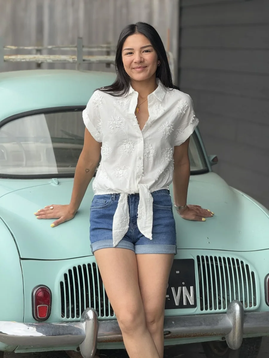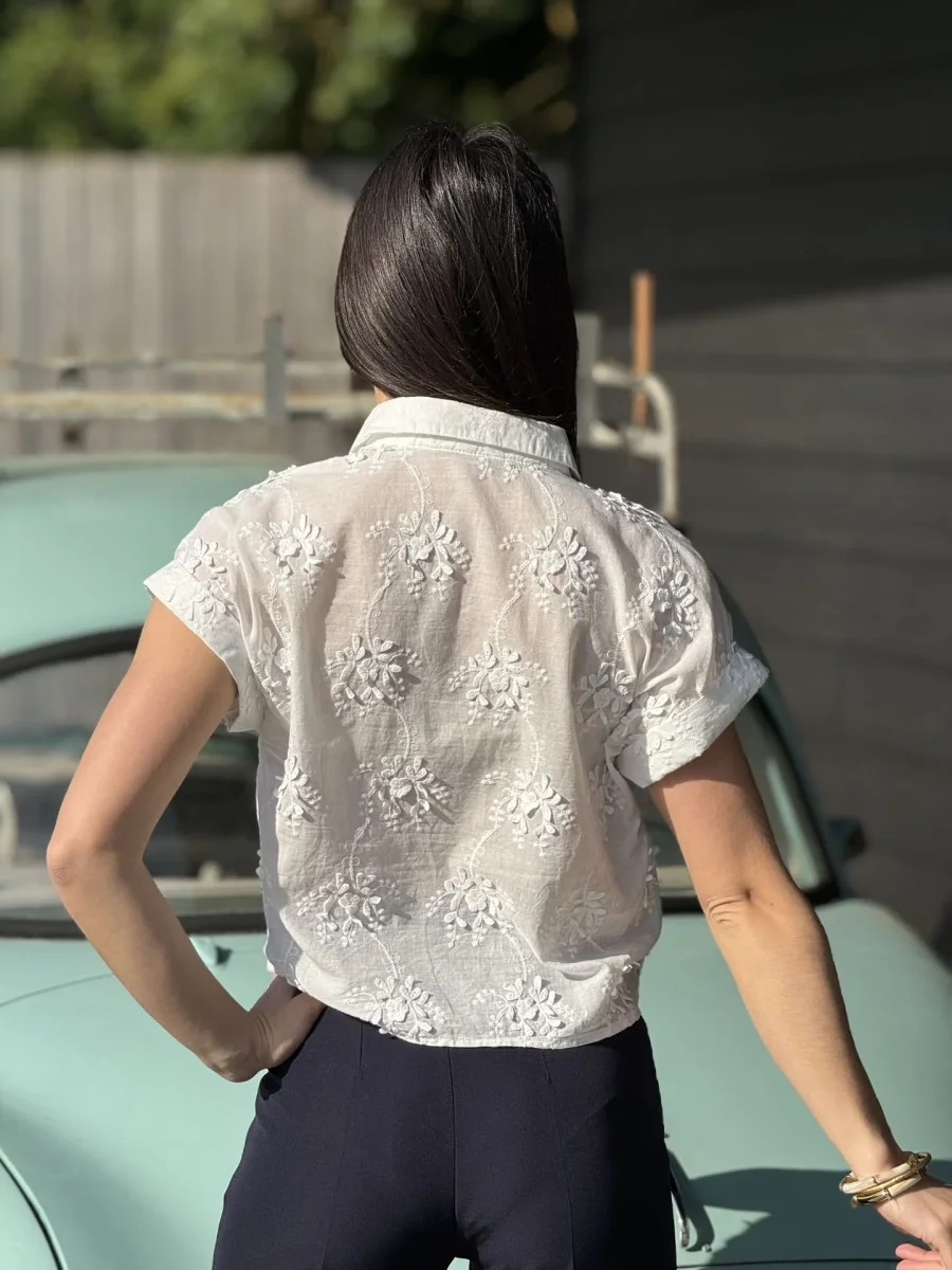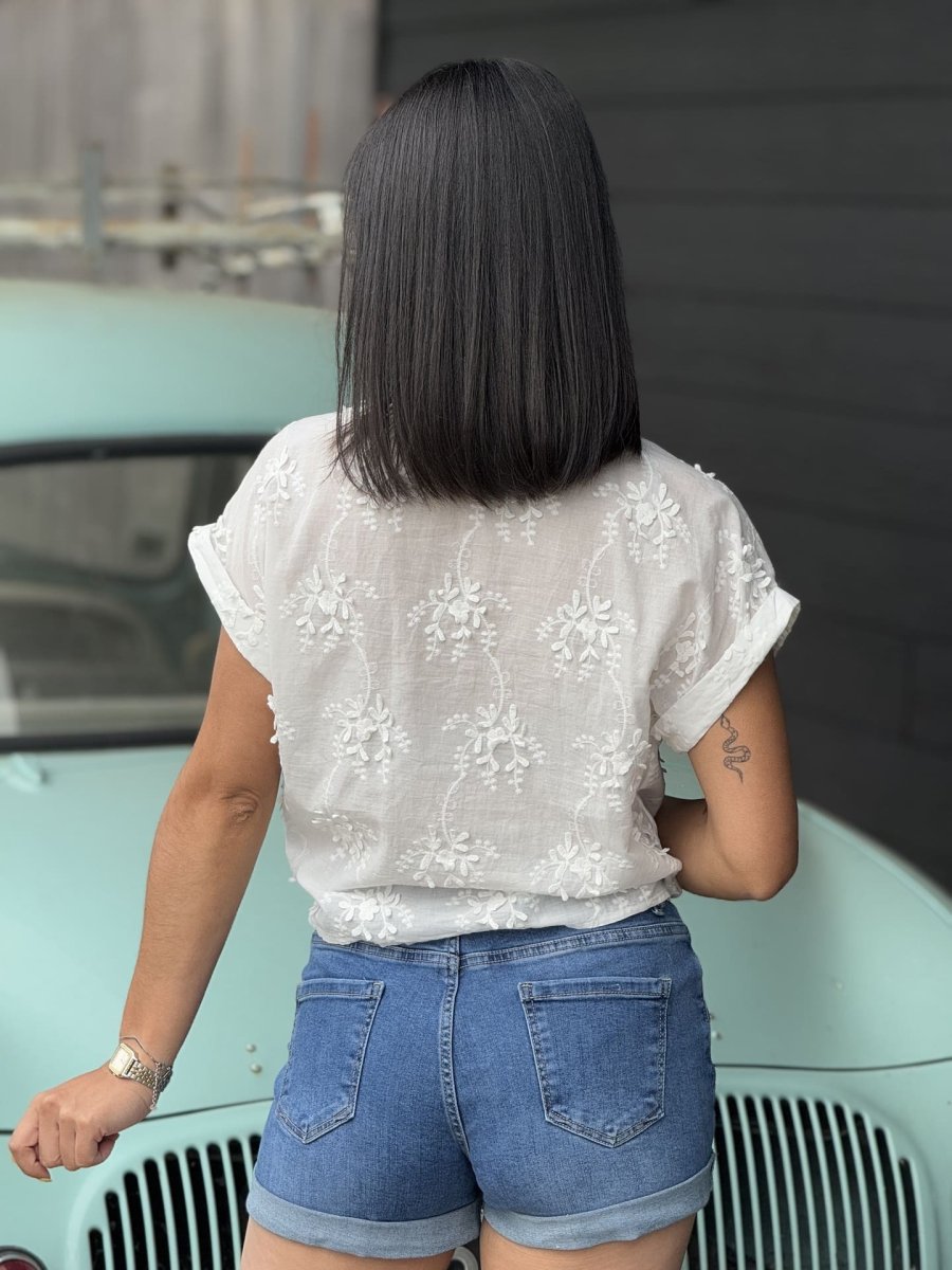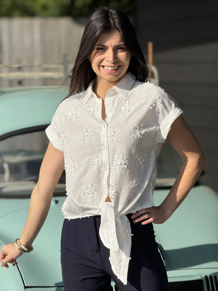 - CHEMISIER à MC BRODERIE ANGLAISE avec petit nœud en bas