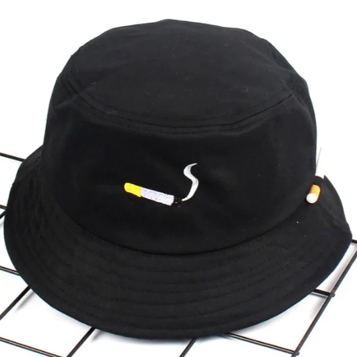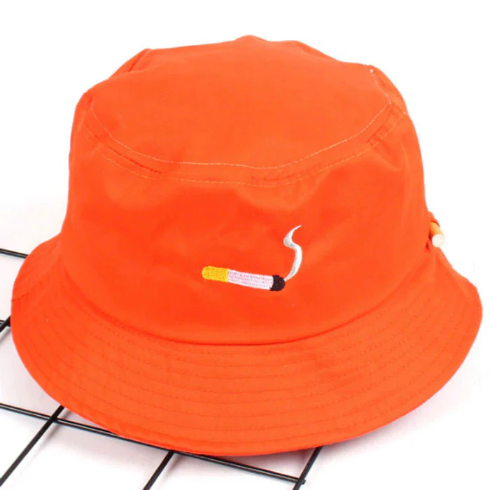 Pour donner une petite personnalité au bob, une petite image de cigarette qui fume et une inscription en broderie sur les deux côtés. Comme ce type de chapeau est généralement fait pour un style plus streetwear, ses détails ont été travaillés de manière à lui offrir de l’élégance. A toi de trouver le bon style pour te mettre en valeur et ce bob viendra apporter la touche urbaine et moderne.