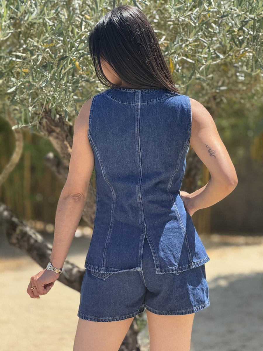 - boléro en jean avec 4 boutons ore + 2 poches