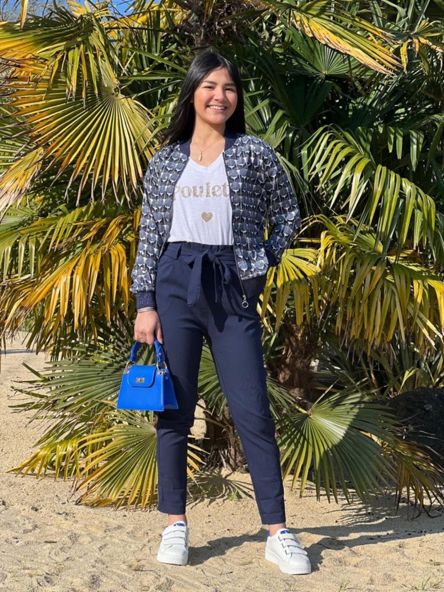 Justine mesure 1m69. Elle porte la taille S/M pour ce modèle.
