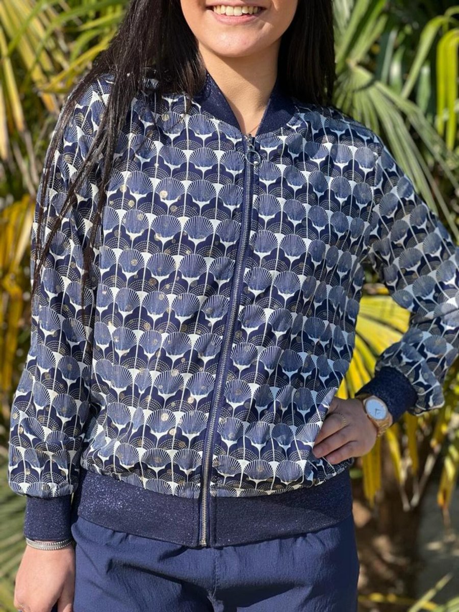 Bombers imprimé fleurs bleu Pois dorés Taille : Justine mesure 1m69. Elle porte la taille S/M pour ce modèle. Taille : S/M (36-38) – M/L (38-40) Composition & entretien : 100% POLYESTER Lavage à la main conseillé Besoin d’un conseil ? Consultez notre foire aux questions ou contactez-nous.