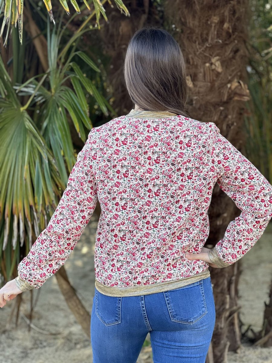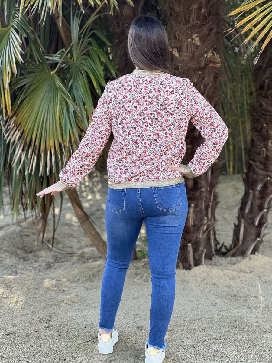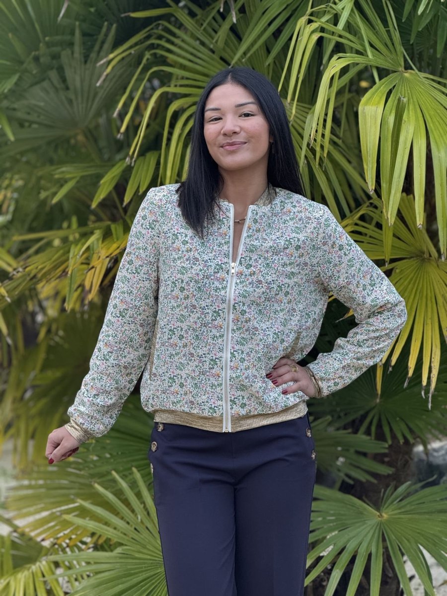 - BOMBERS IMPRIMÉ PETITES FLEURS – COL MANCHE BAS GOLD