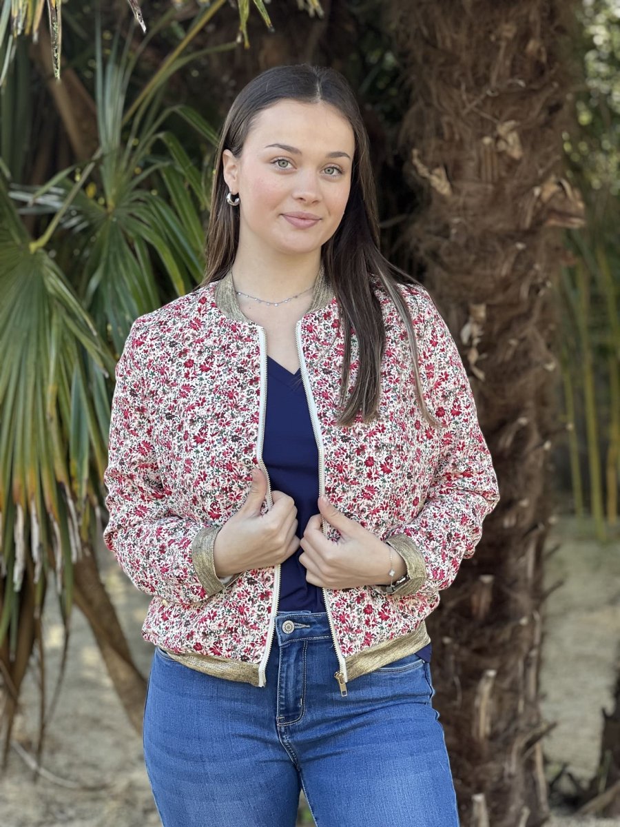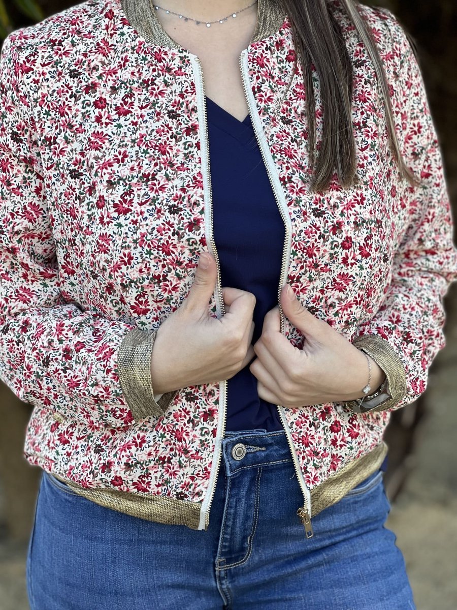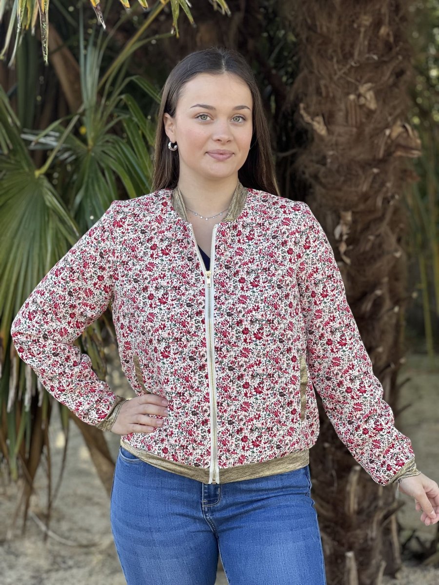 - BOMBERS IMPRIMÉ PETITES FLEURS – COL MANCHE BAS GOLD