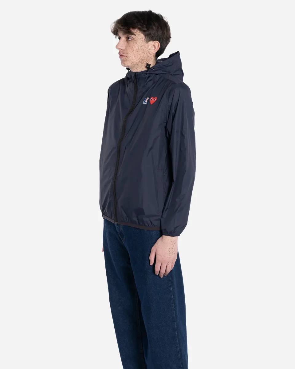 Les logos CDG et K Way à l’avant et le logo CDG Play au dos.