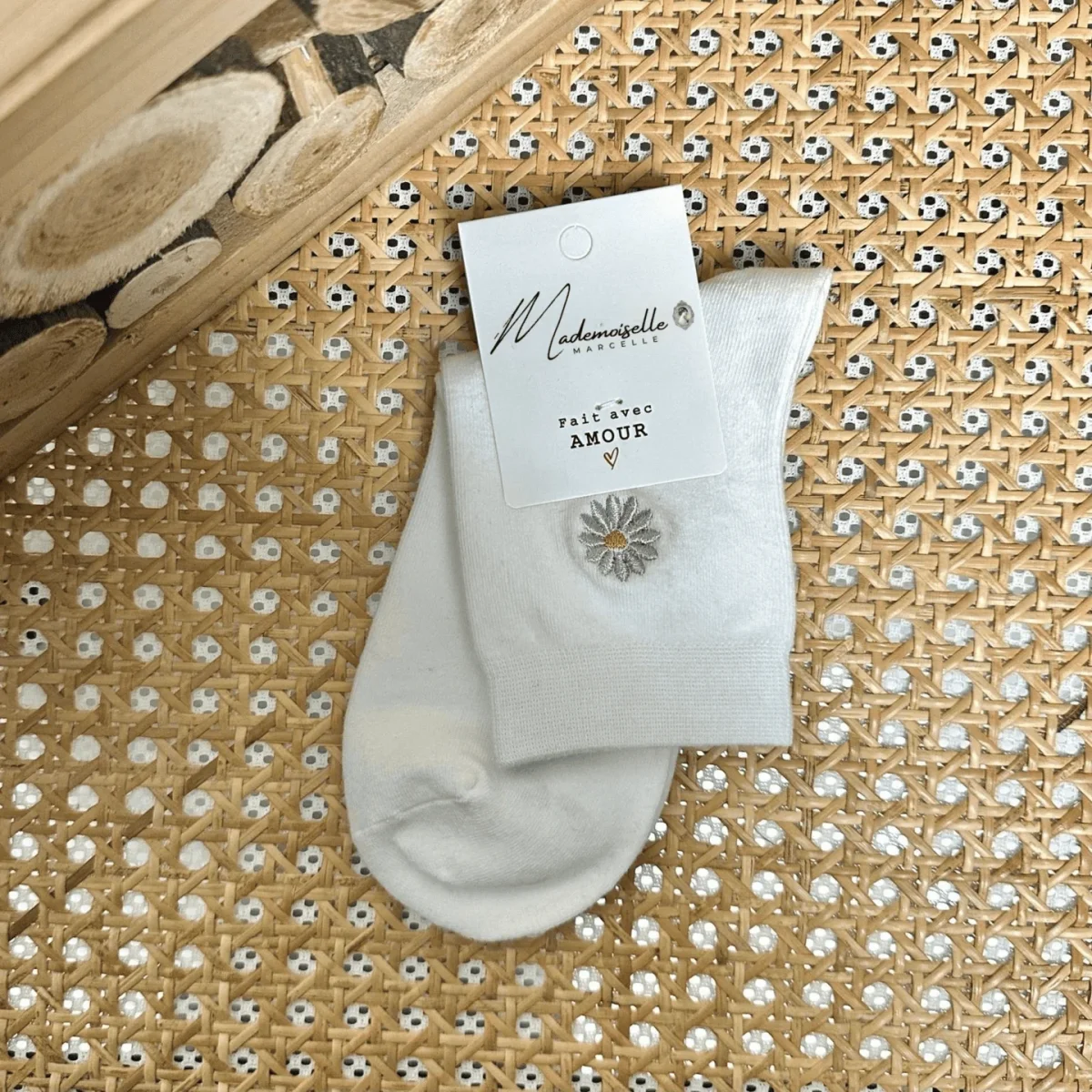 - CHAUSSETTE AVEC MARGUERITE EN BRODERIE