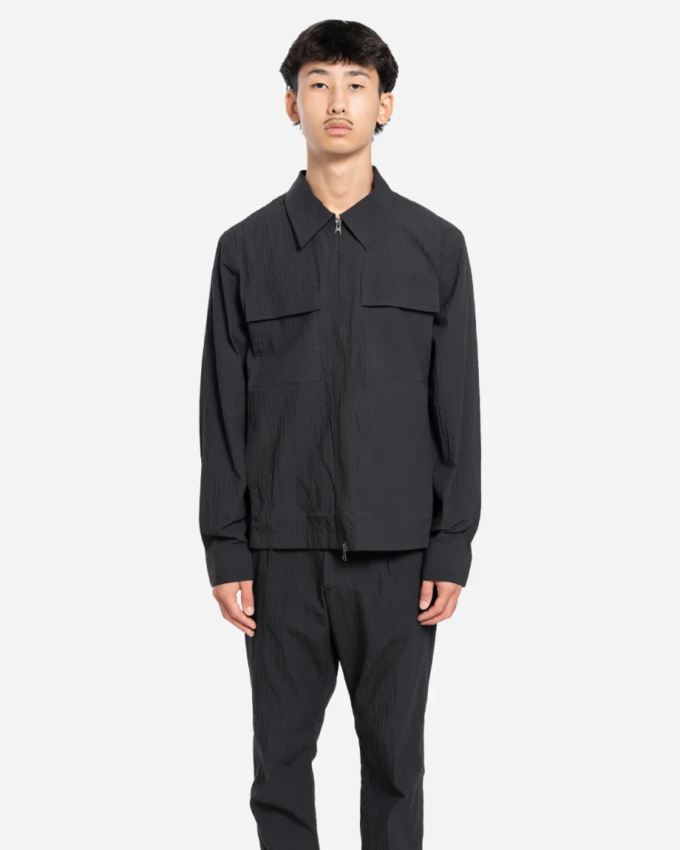Chemise, hybride, manches longues, coton biologique, seersucker, stretch, zip, poches poitrine, boutons logotés