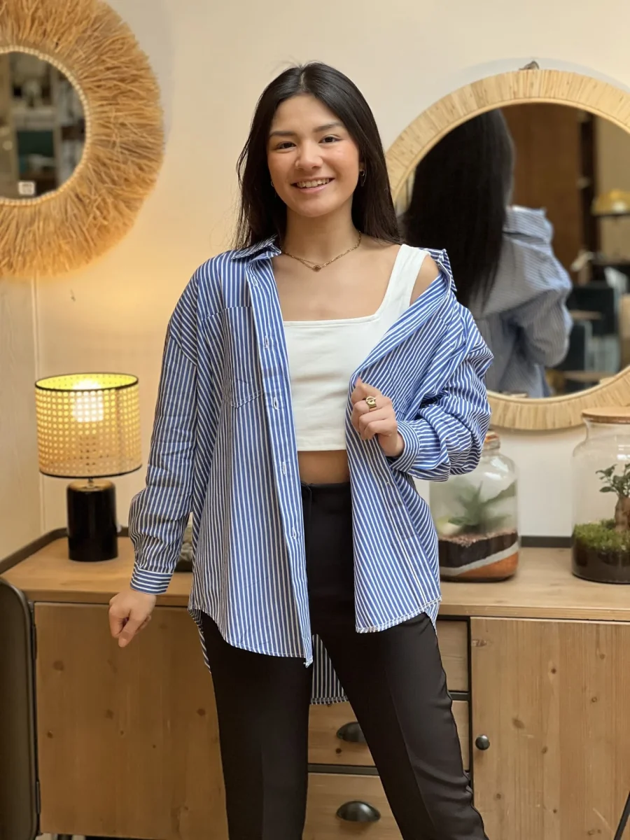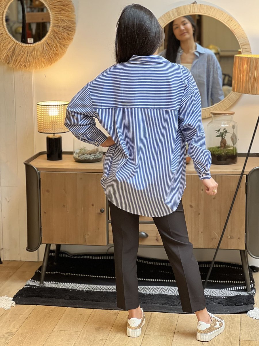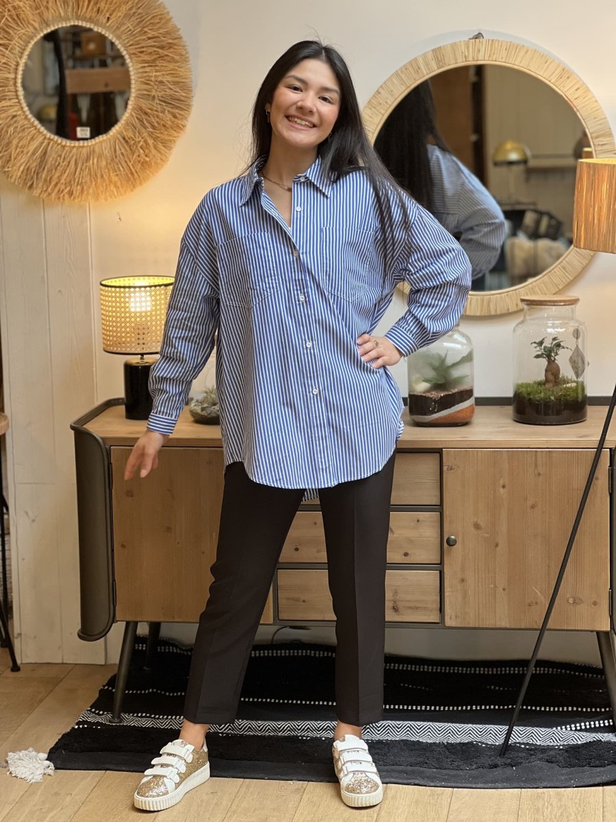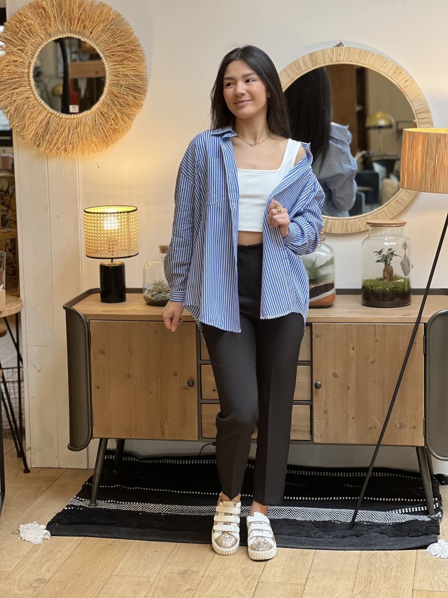 CHEMISE A RAYURES Taille : Juliette mesure 1m63. Elle porte la taille S/M pour le modèle noir. Taille : S/M (36-38) et M/L (38-40) Composition & entretien : 100% COTON Lavage à la main conseillé Besoin d’un conseil ? Consultez notre foire aux questions ou contactez-nous via notre formulaire de contact
