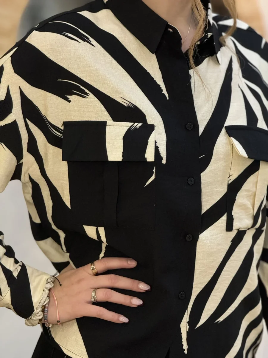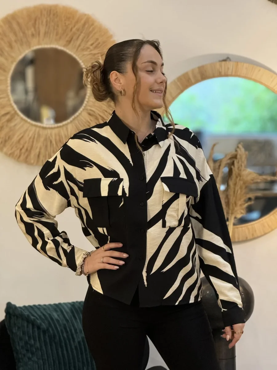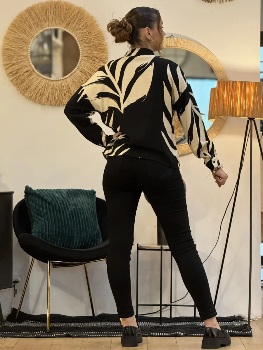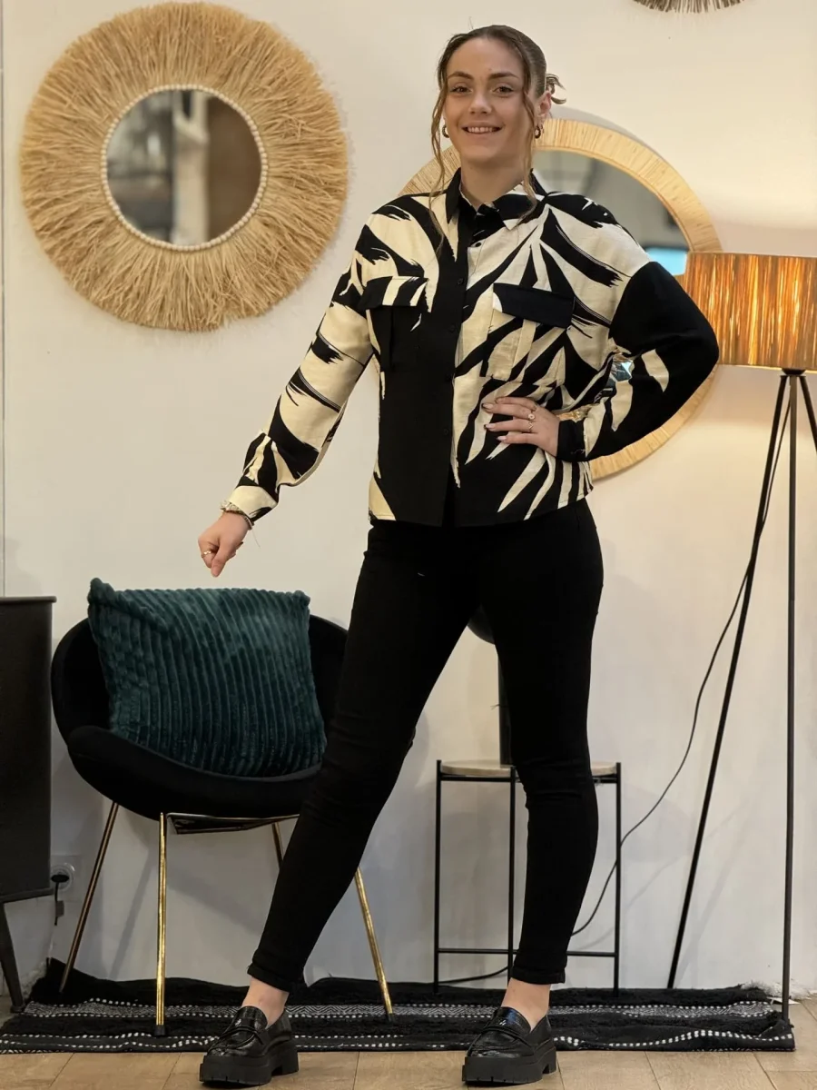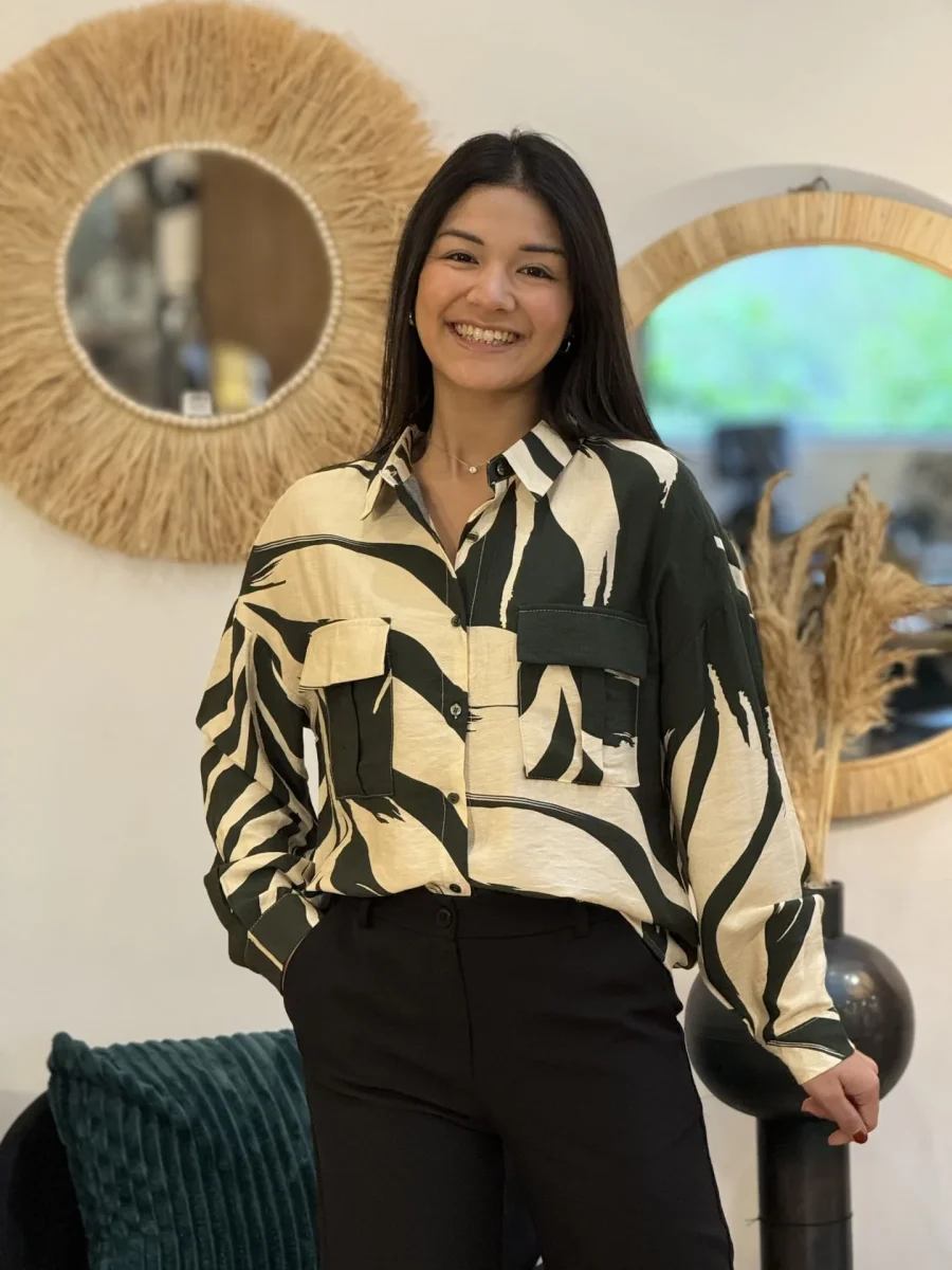 - Chemise à ml imprimée feuilles avec deux poches poitrine