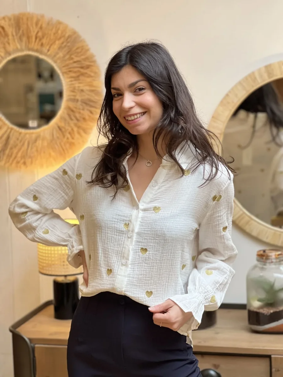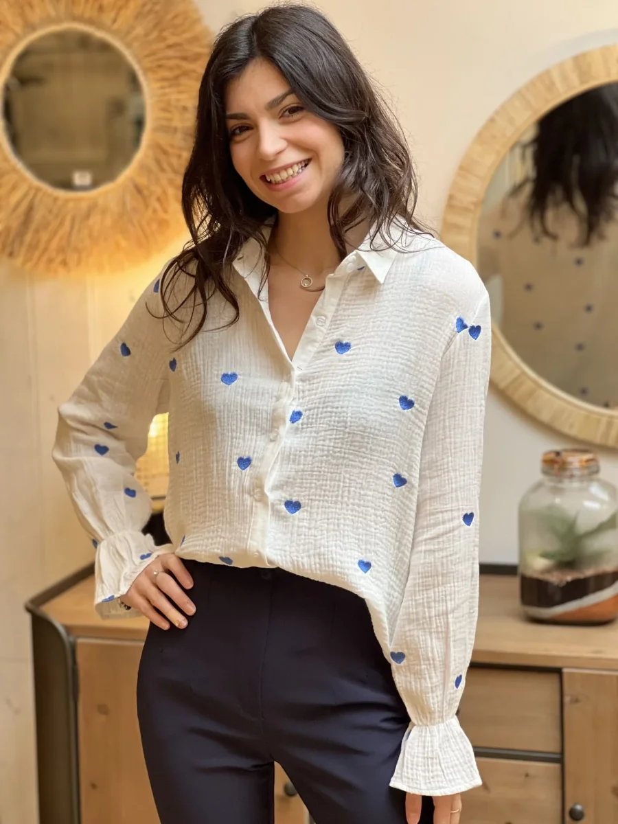 - chemise en gaz de coton à ml imprimé cœur v