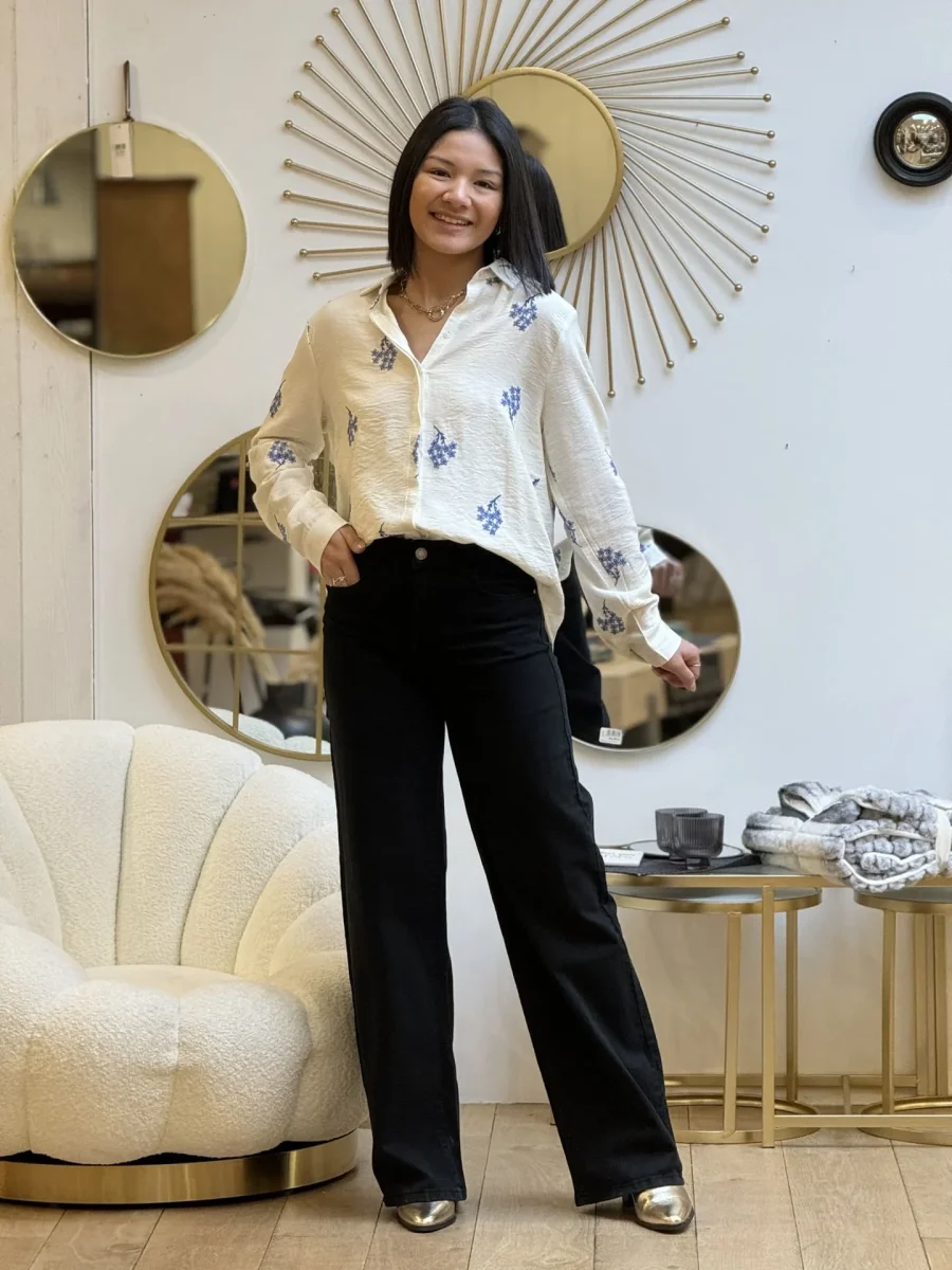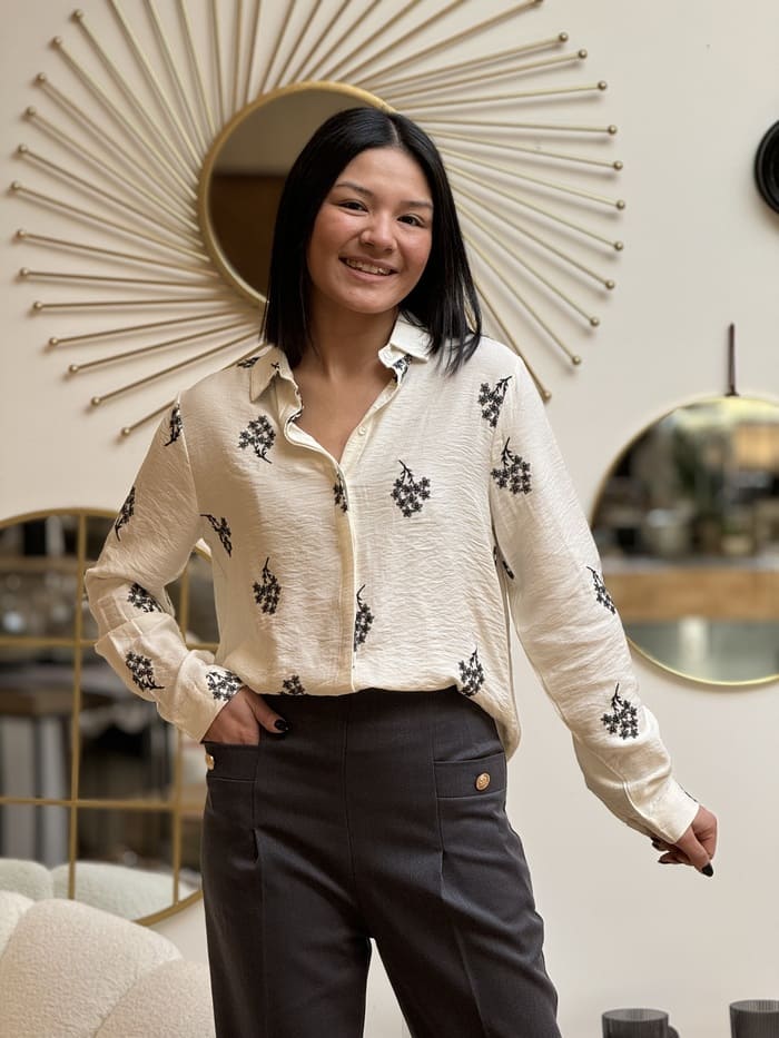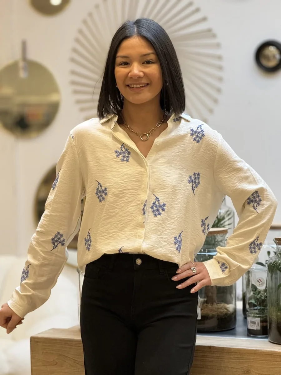 - Chemise à ml avec broderie petites fleurs
