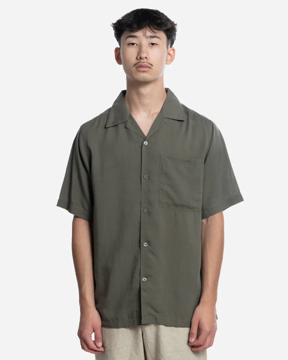 Cette chemise est confectionnée dans un doux tissage de coton avec un col ouvert et une poche poitrine unique.