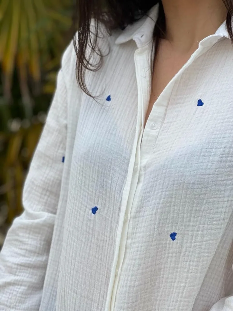 - CHEMISE À ML IMPRIMÉ PETITS CŒURS