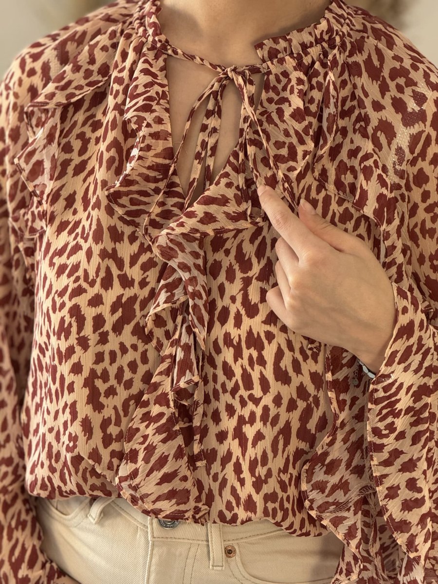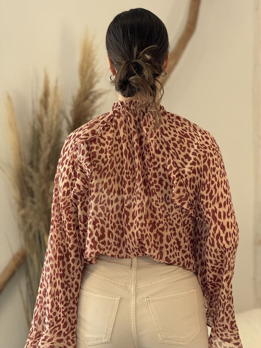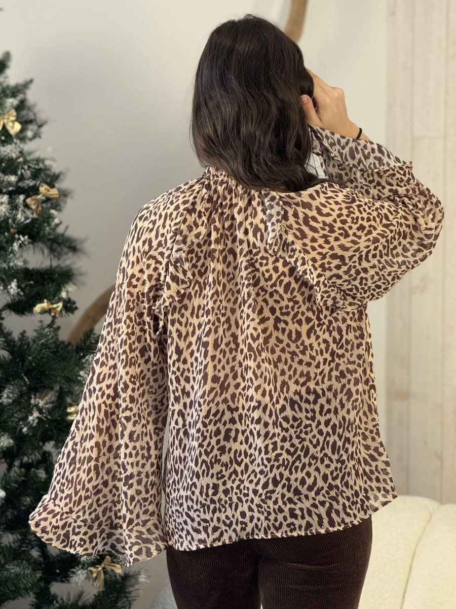 - CHEMISIER À ML ÉVASÉ IMPRIMÉ LÉOPARD