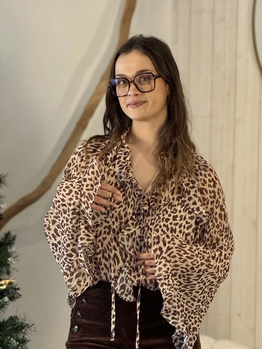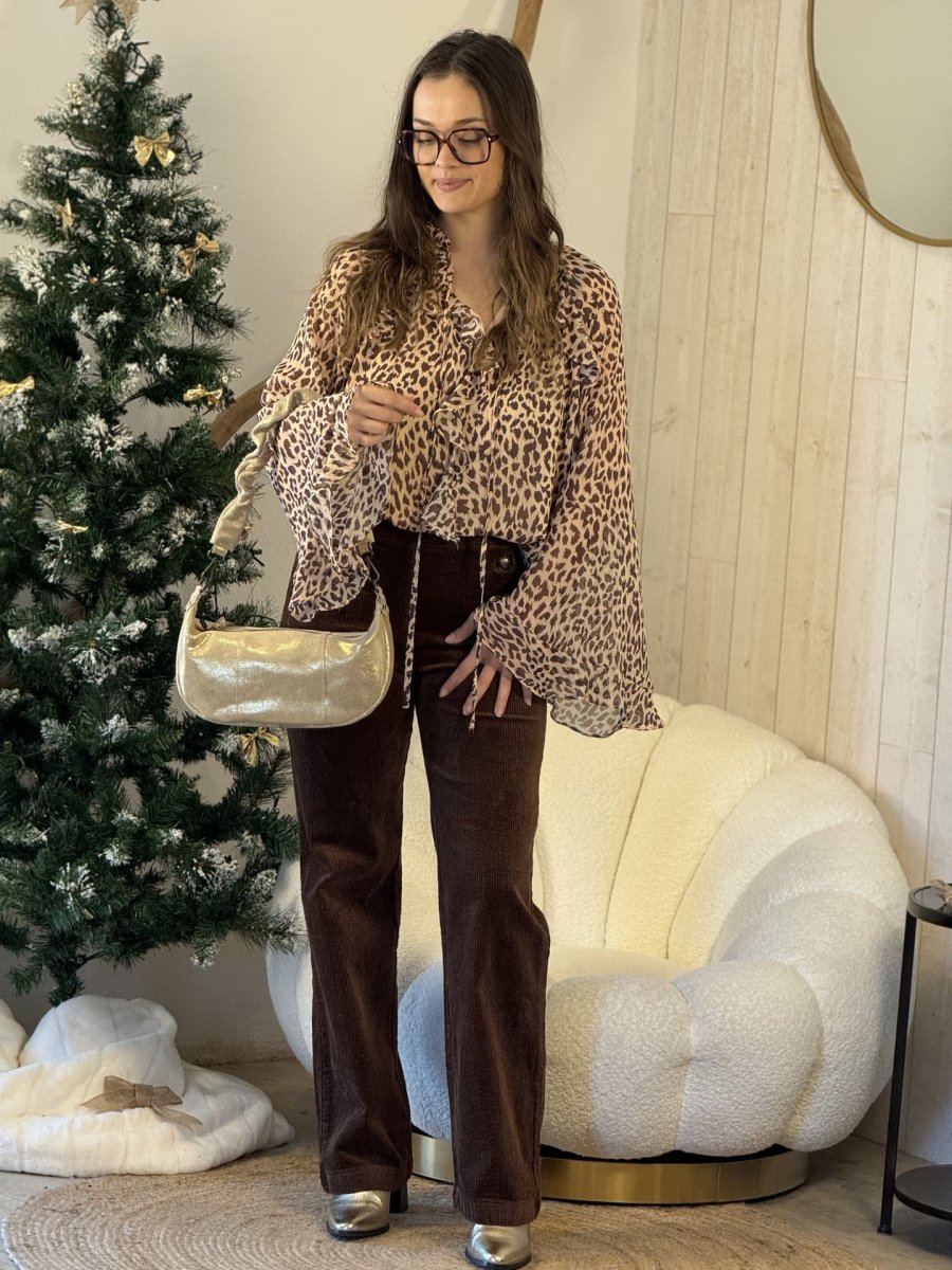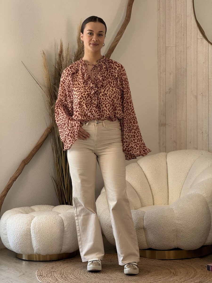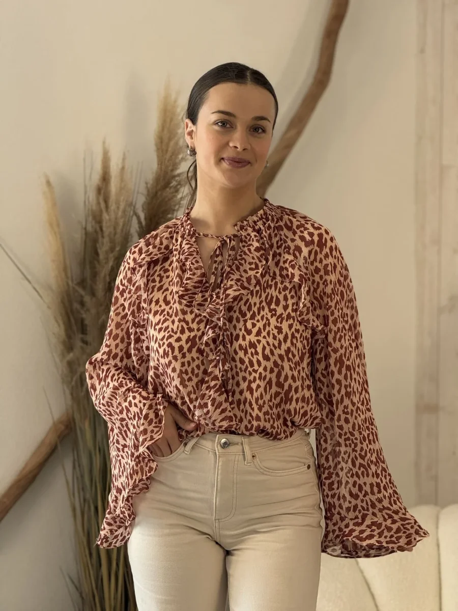 - CHEMISIER À ML ÉVASÉ IMPRIMÉ LÉOPARD