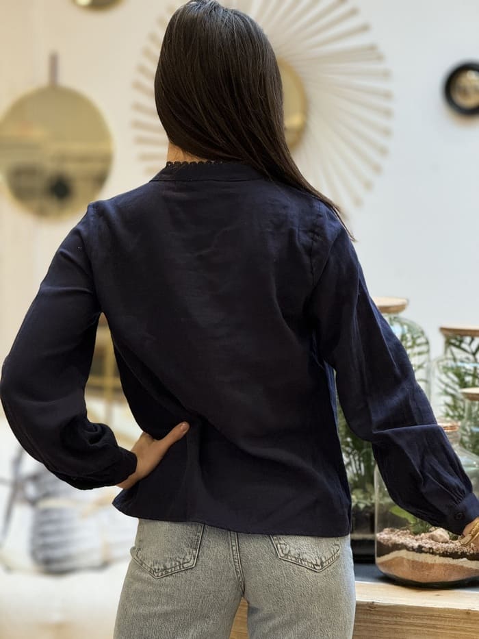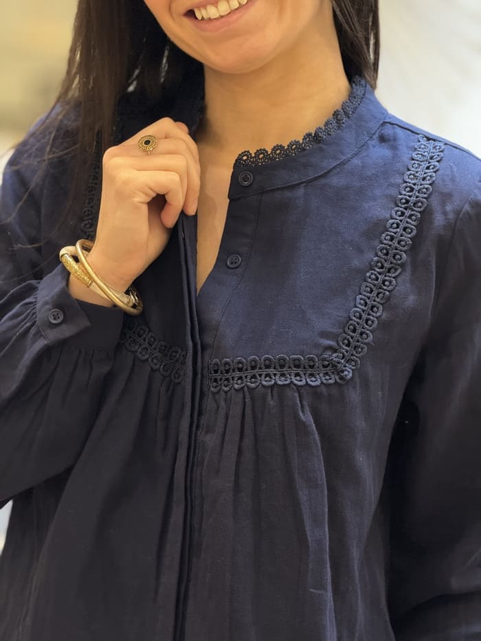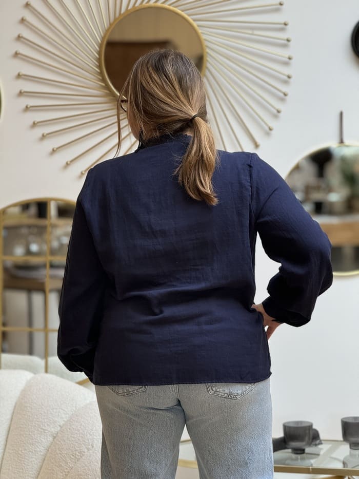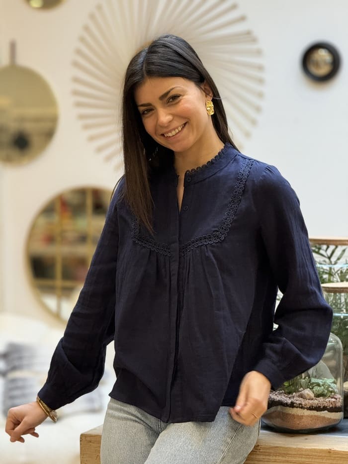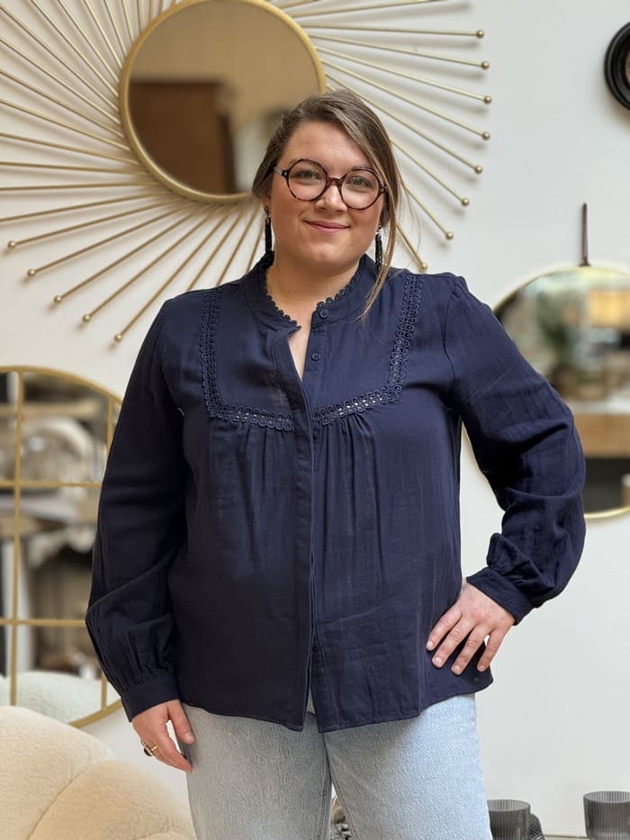 - Chemisier à ml col rond et broderie