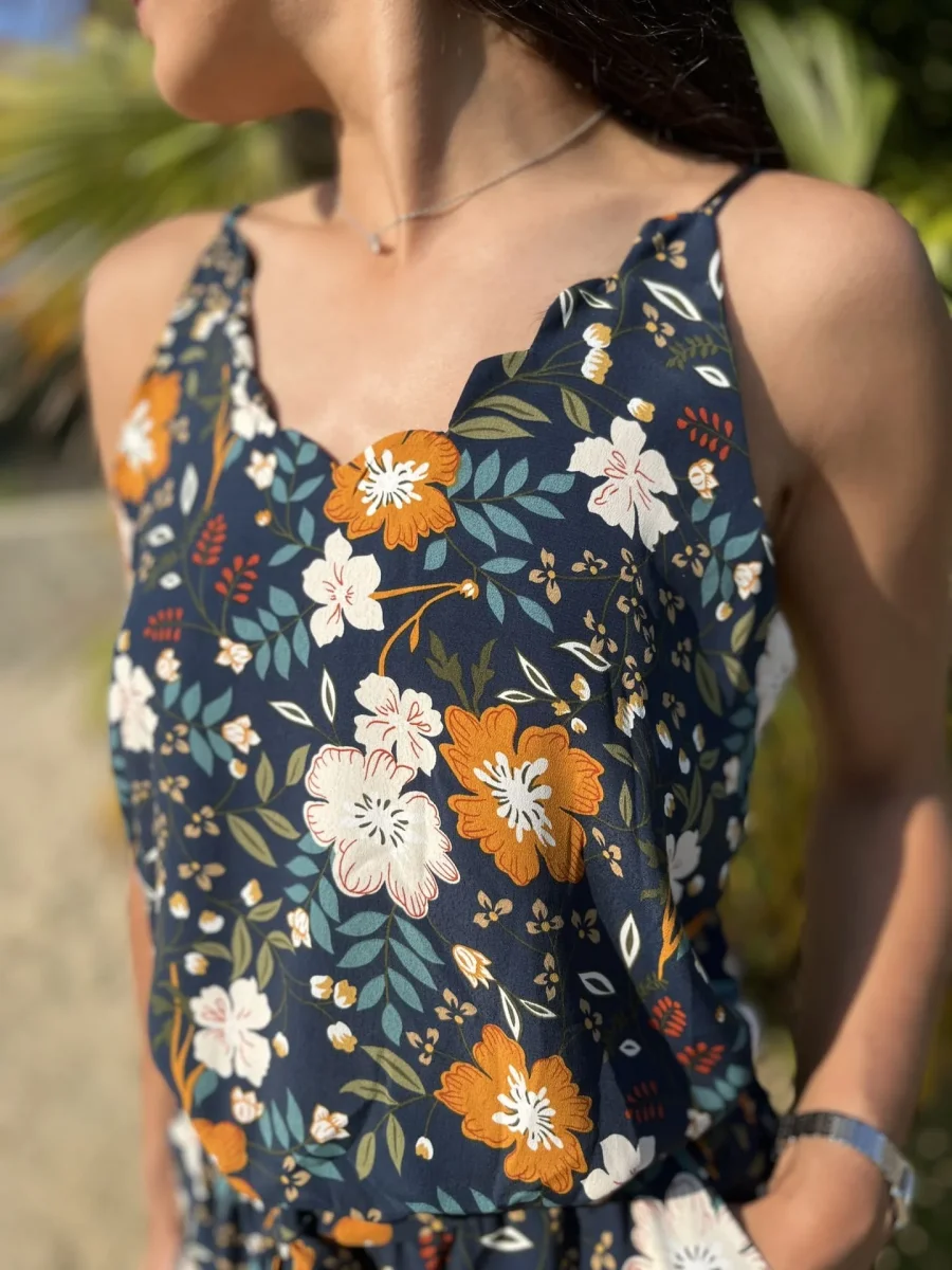 - COMBIPANTALON À BRETELLES – FLEURS JAUNES, BLANCHES, ORANGES
