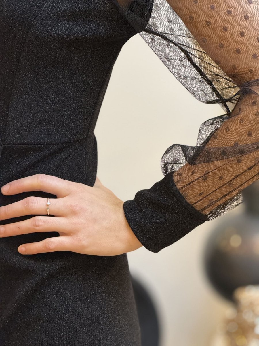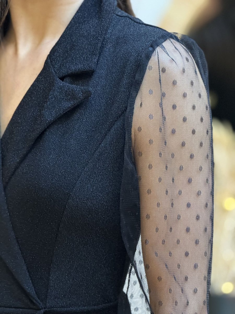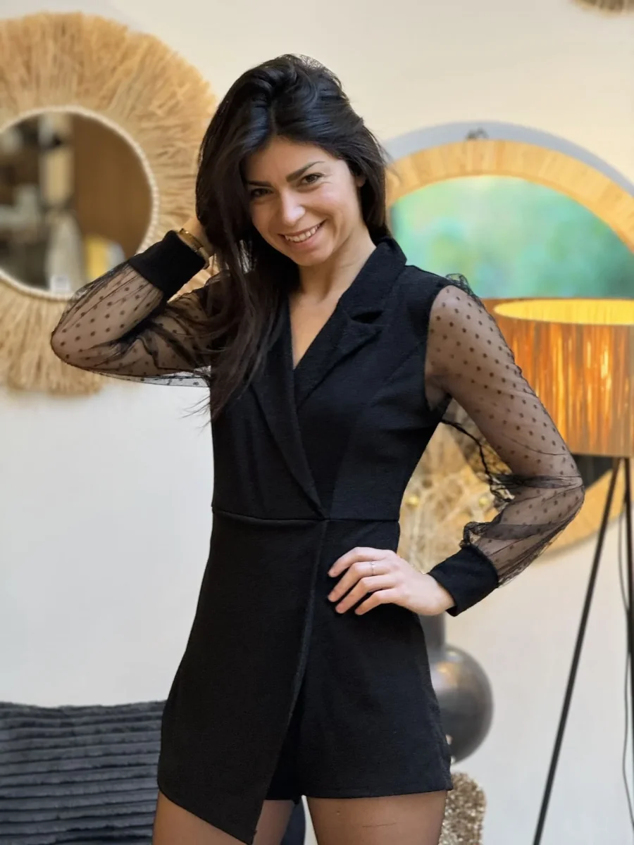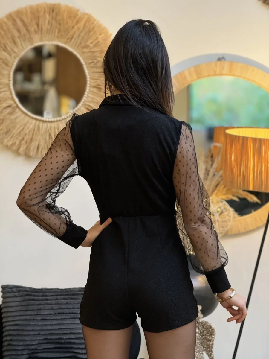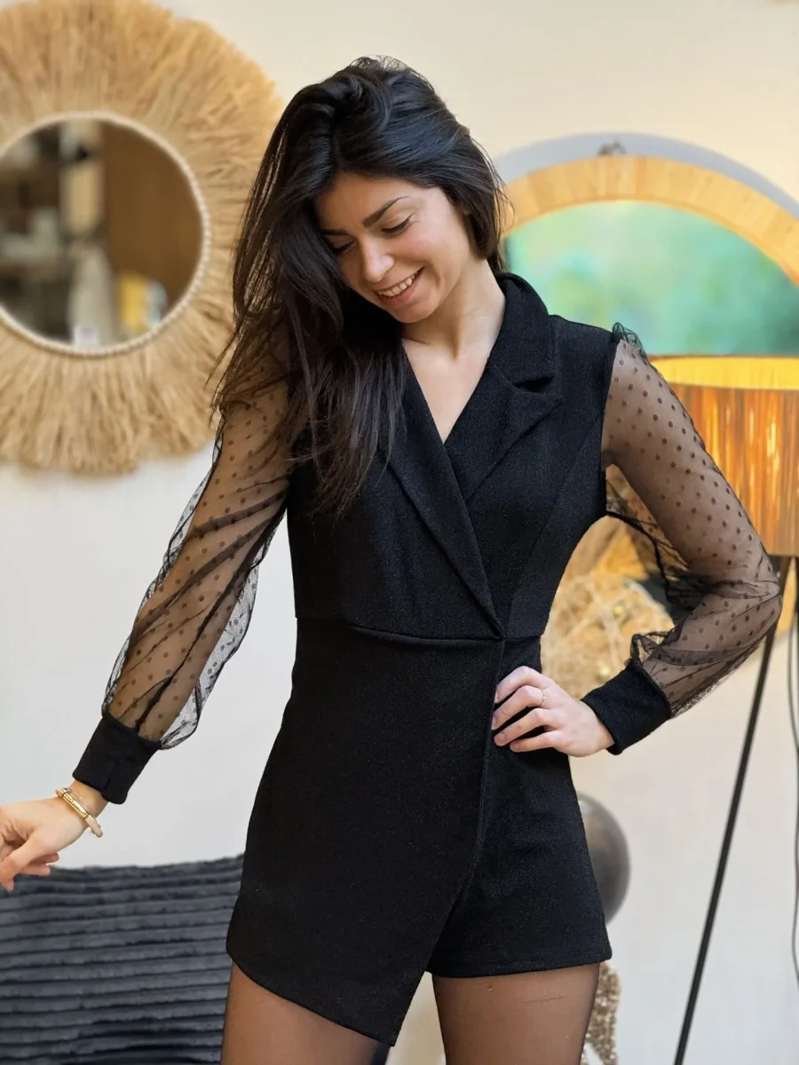 - COMBISHORT PAILLETTÉE À ML TRANSPARENTE DENTELLE IMPRIMÉ POIS – COL CACHE CŒUR CHEMISE