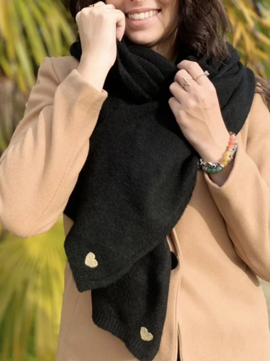 Écharpe unie toute douce petit cœur gold Taille : Maëlys mesure 1m68 et Justine mesure 1m69. Elles portent la taille Taille unique pour ce modèle. Taille : Taille unique Convient de la taille 36 à 42 Composition & entretien : 100% polyester Lavage à la main conseillé Besoin d’un conseil ? Consultez notre foire aux […]