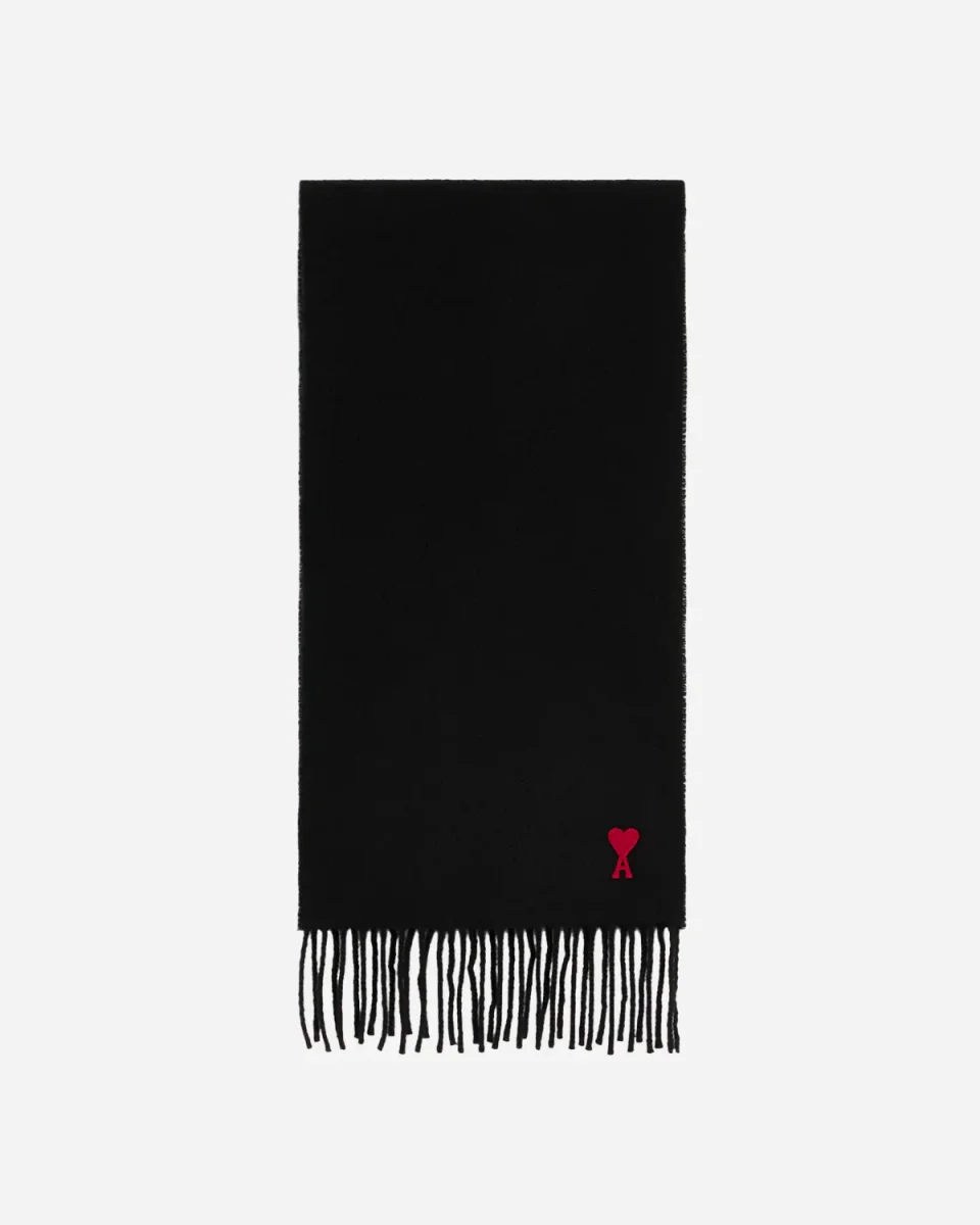 Écharpe, Ami Paris, Noir, Laine, Ami de Coeur, Franges, Accessoire d’hiver, Made in Italy, Classique