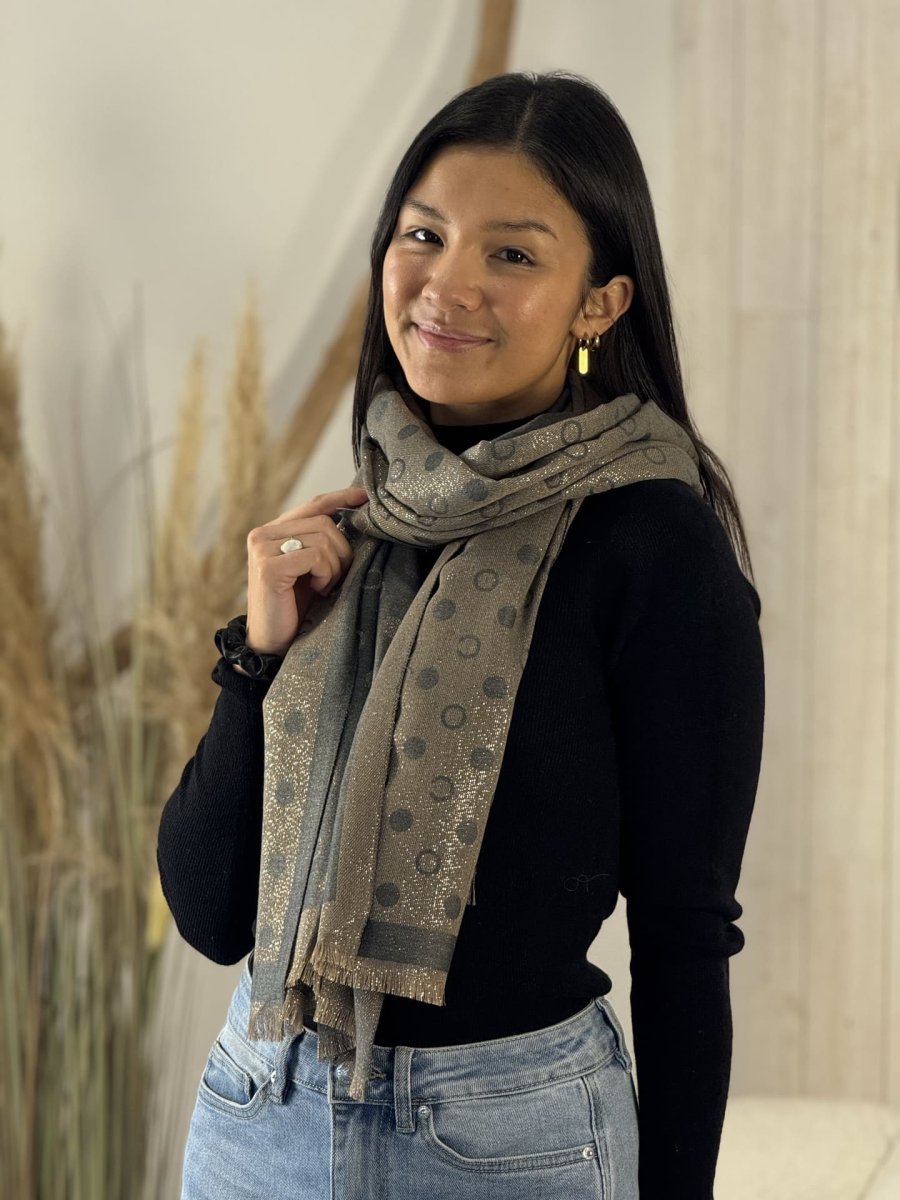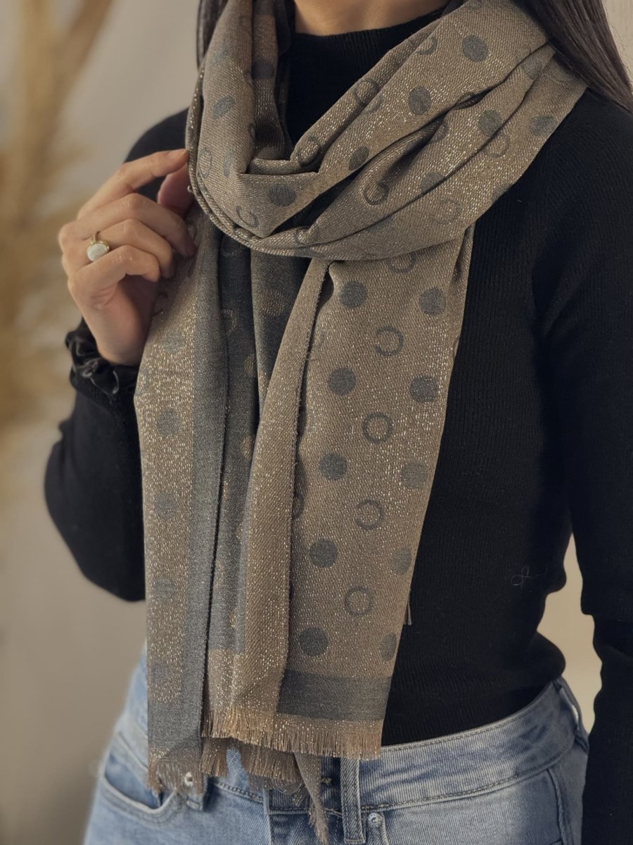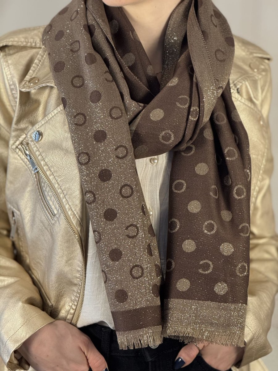 - ECHARPE FRANGES IMPRIMÉE GRANS CERCLES PAILLETTÉE
