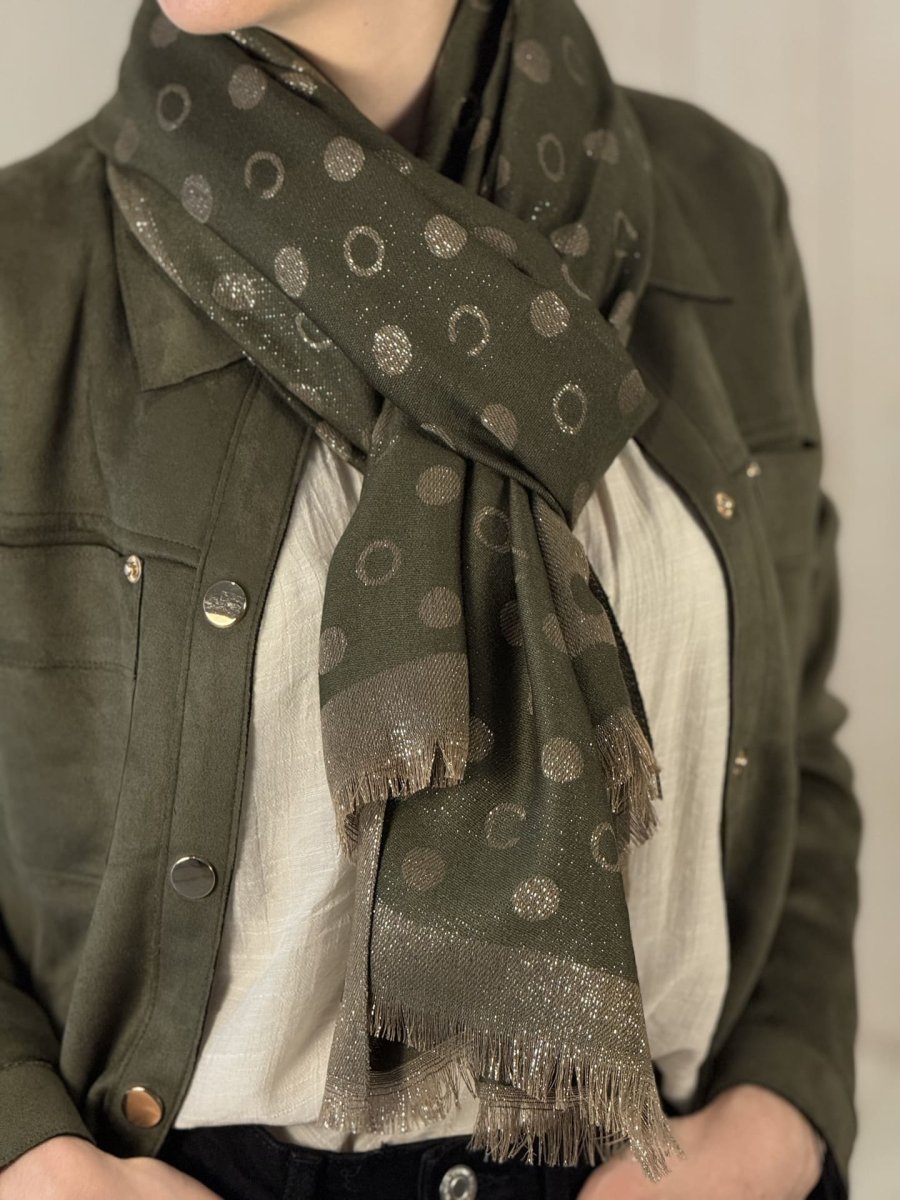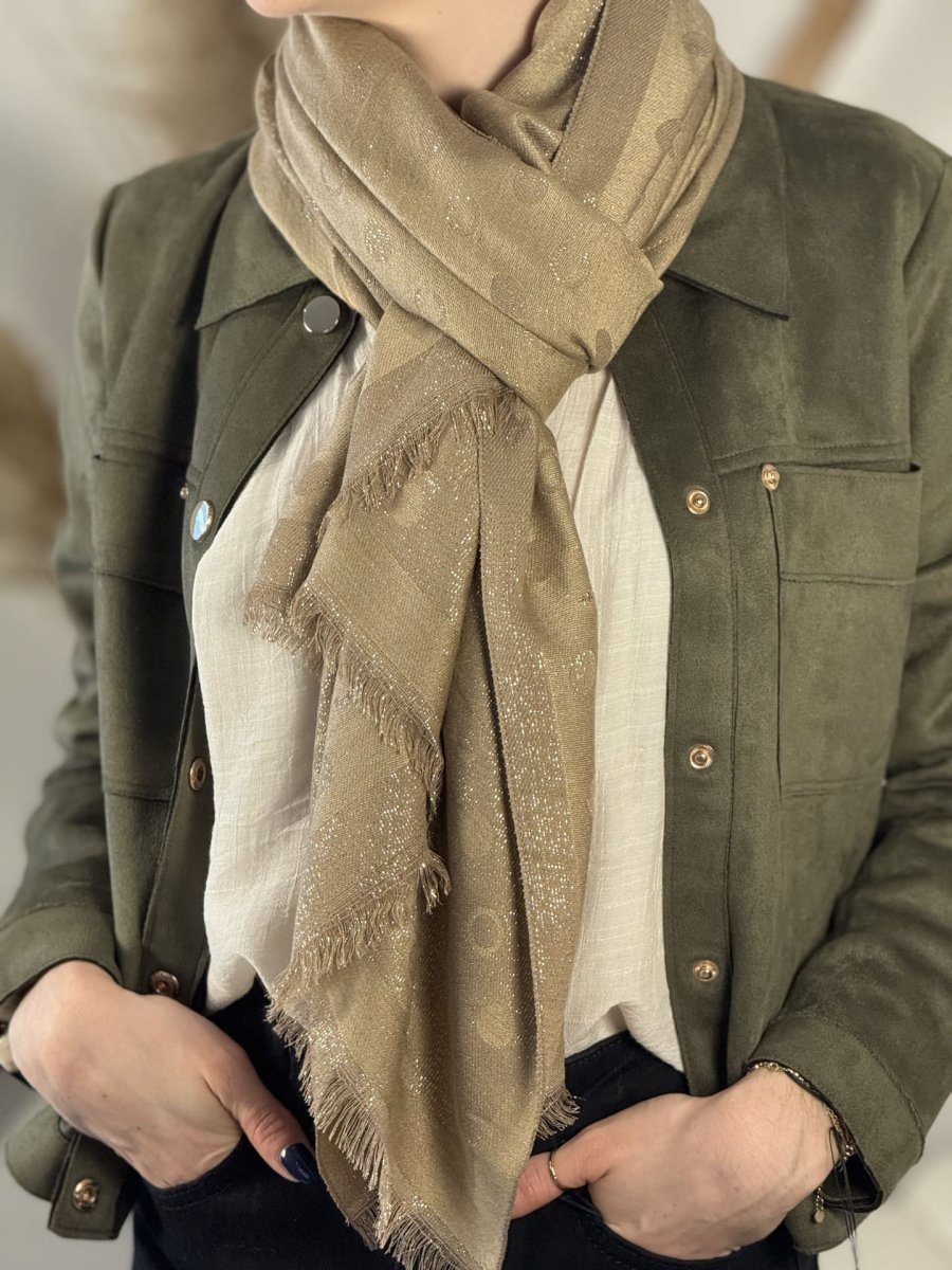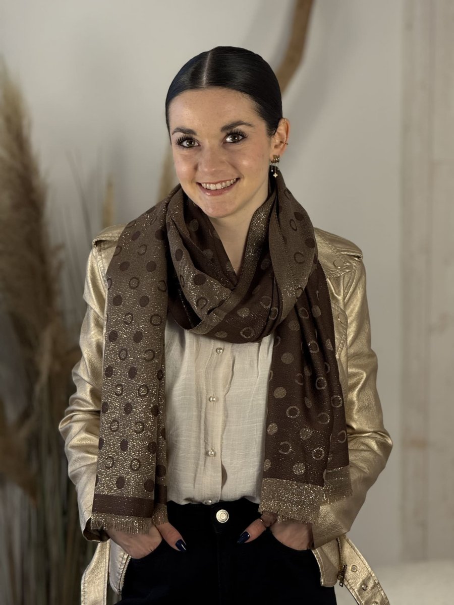 - ECHARPE FRANGES IMPRIMÉE GRANS CERCLES PAILLETTÉE