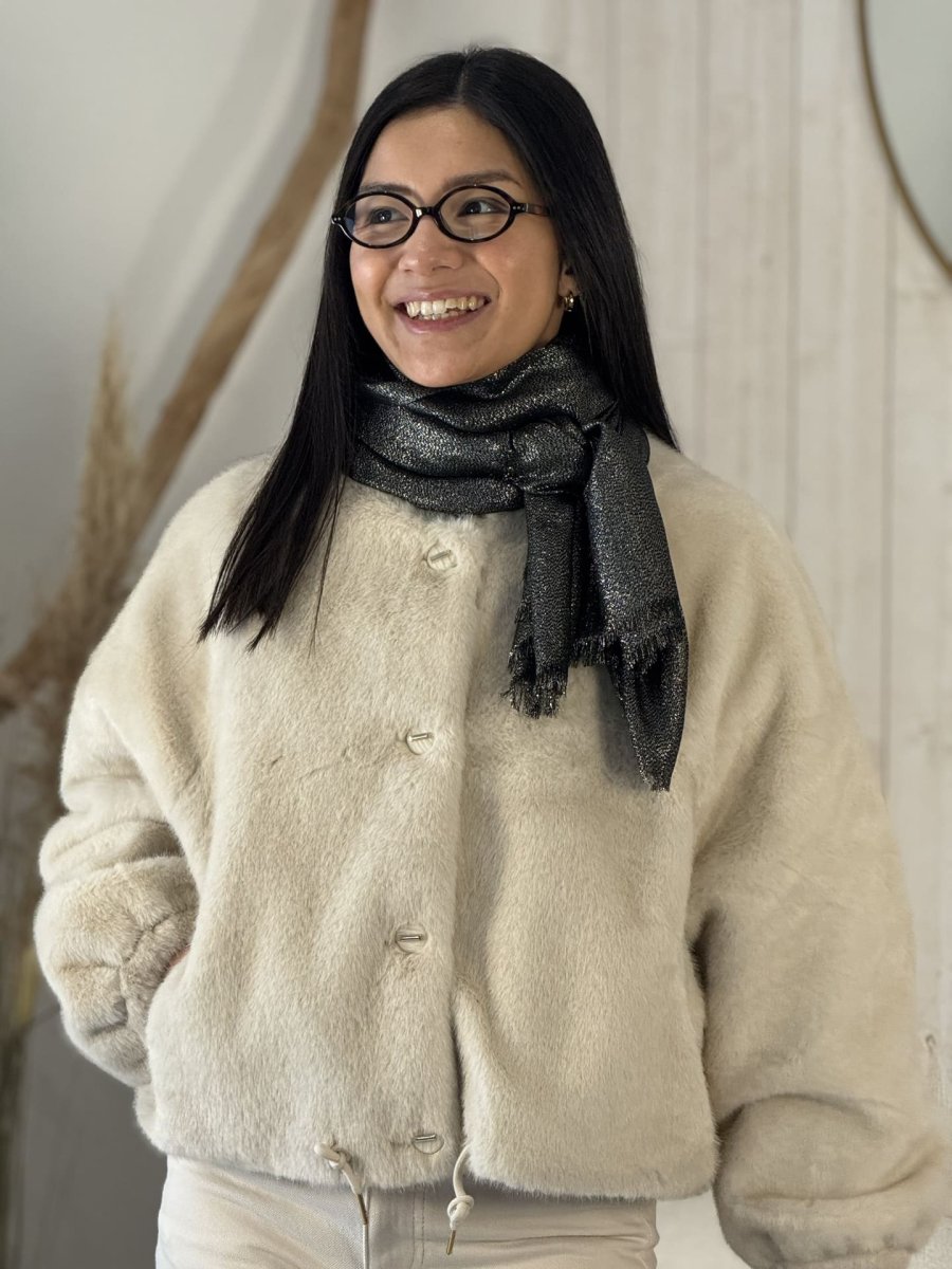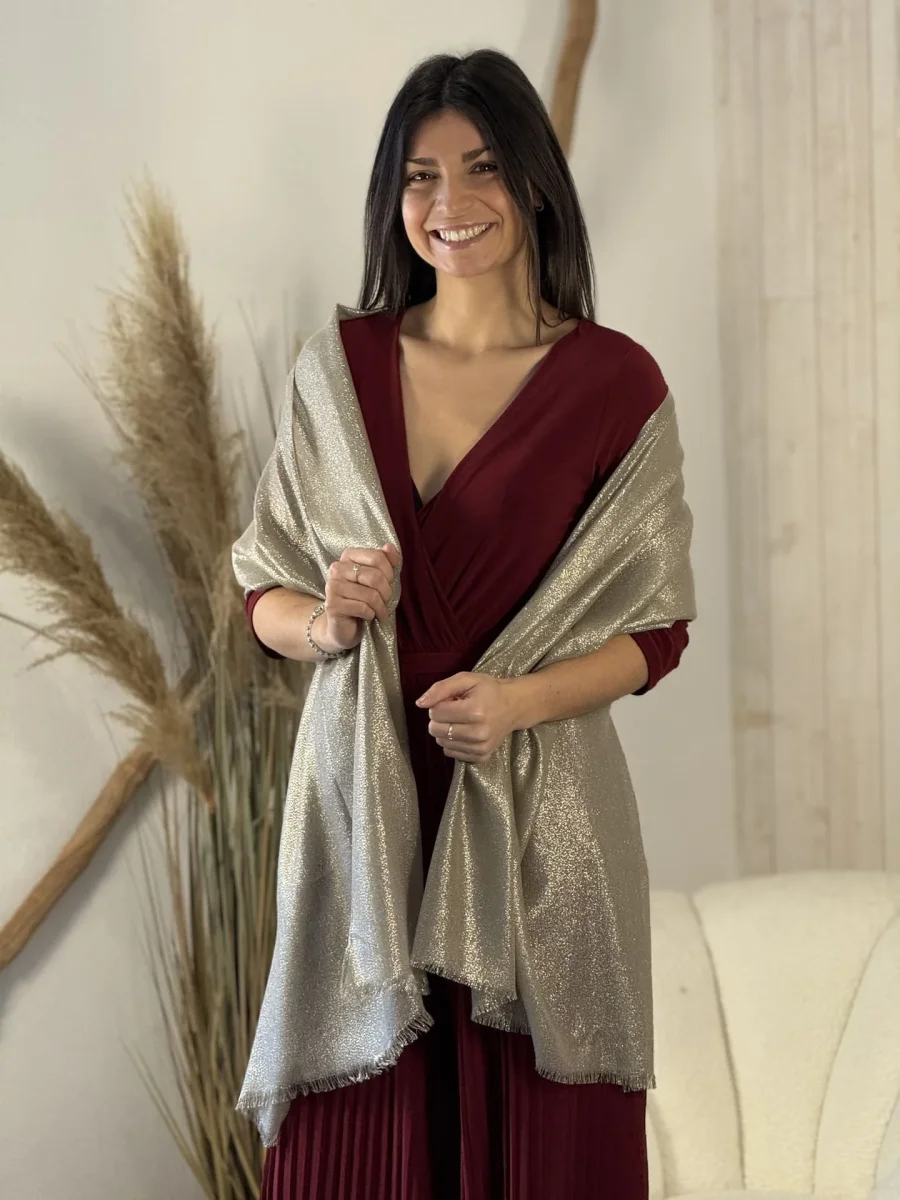 ÉTOLE PAILLETÉE Taille : Justine mesure 1m69 et Mathilde mesure 1m65. Elles portent la taille unique pour ce modèle. Taille : Taille unique Composition & entretien : 100% POLYESTER Lavage à la main conseillé Besoin d’un conseil ? Consultez notre foire aux questions ou contactez-nous via notre formulaire de contact