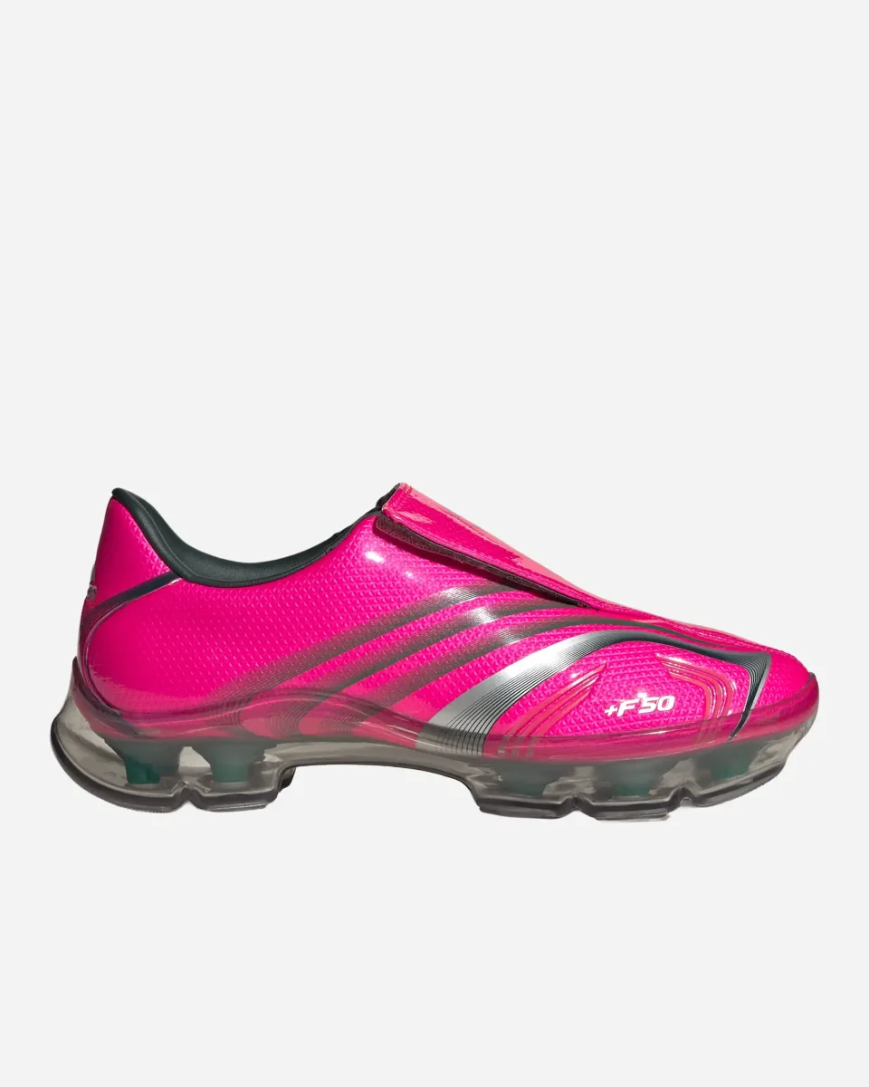 baskets, adidas, F50 Walkable, slip-on, football heritage, irisé, rose, vert, argent, streetwear, confort, JQ9556, sans lacets.