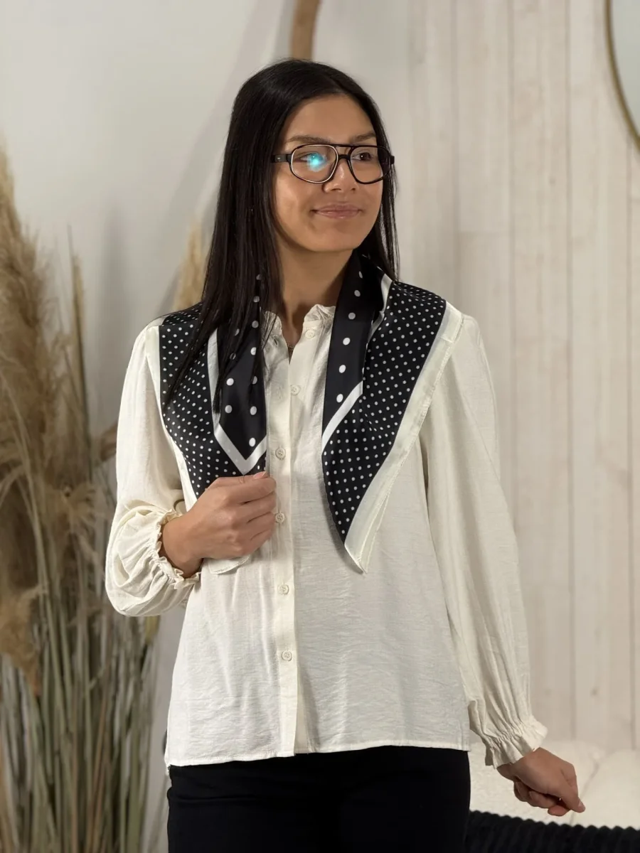 FOULARD CARRÉ PETITS ET GRANDS POIS Taille : Justine mesure 1m69 et Mathilde mesure 1m65. Elles portent la taille unique pour ce modèle. Taille : Taille unique Composition & entretien : ATTENTE Lavage à la main conseillé Besoin d’un conseil ? Consultez notre foire aux questions ou contactez-nous via notre formulaire de contact