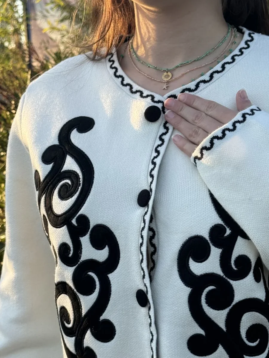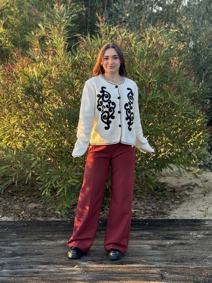 CARDIGAN A MC – MOTIFS ARABESQUES DEVANT