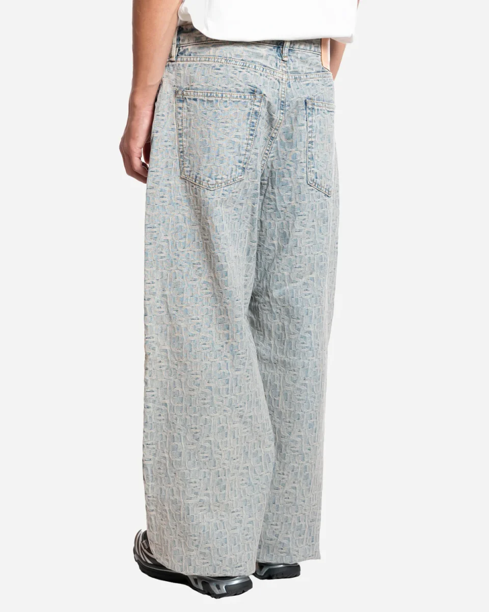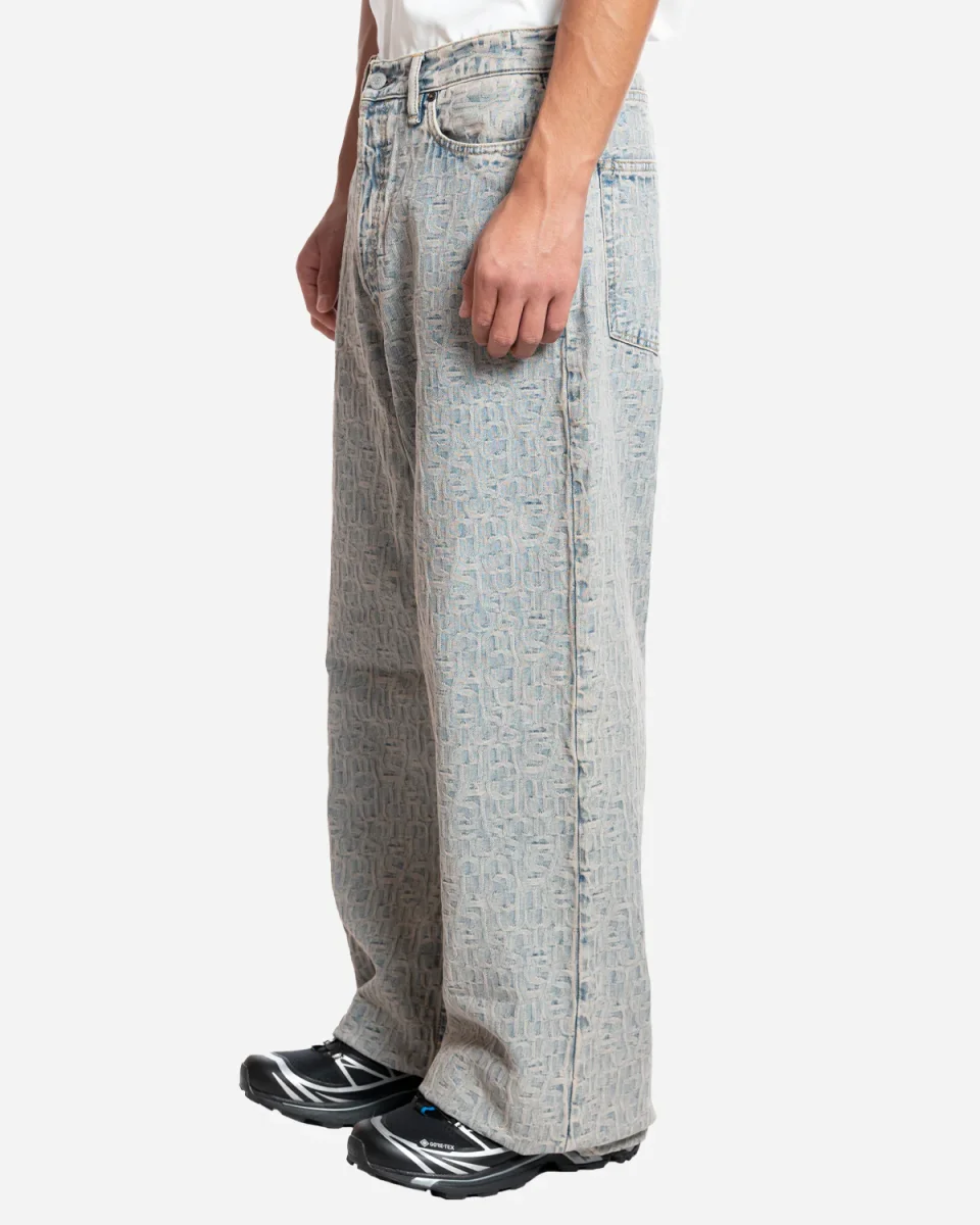 Cette version ample du jean 1981M adopte un design à jambe large à taille basse. Il est fait de denim non-stretch et décoré d’un jacquard à motif entrelacé de lettres.