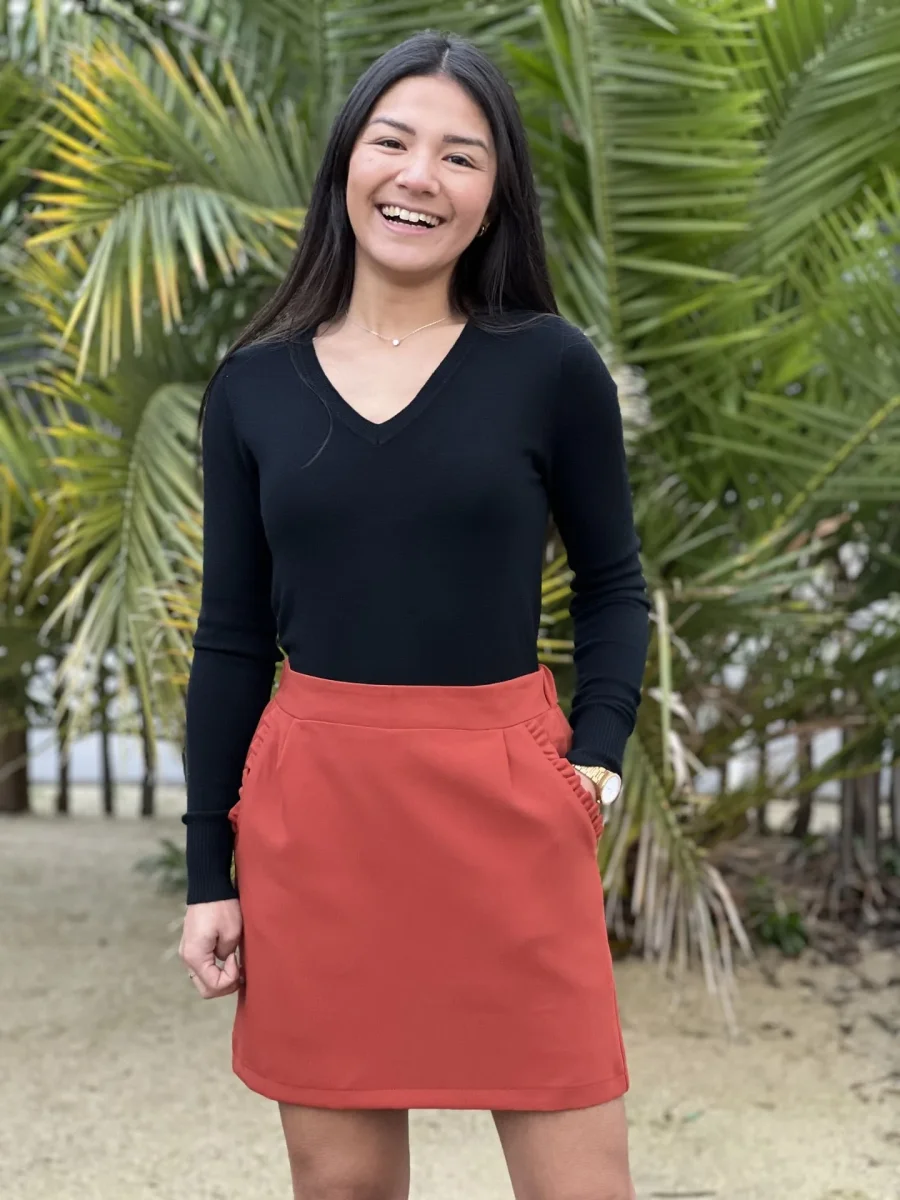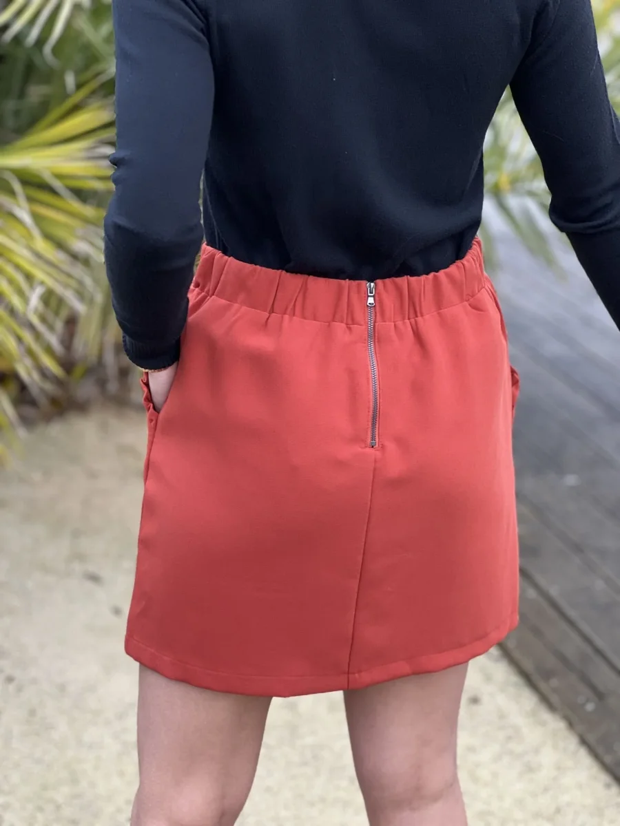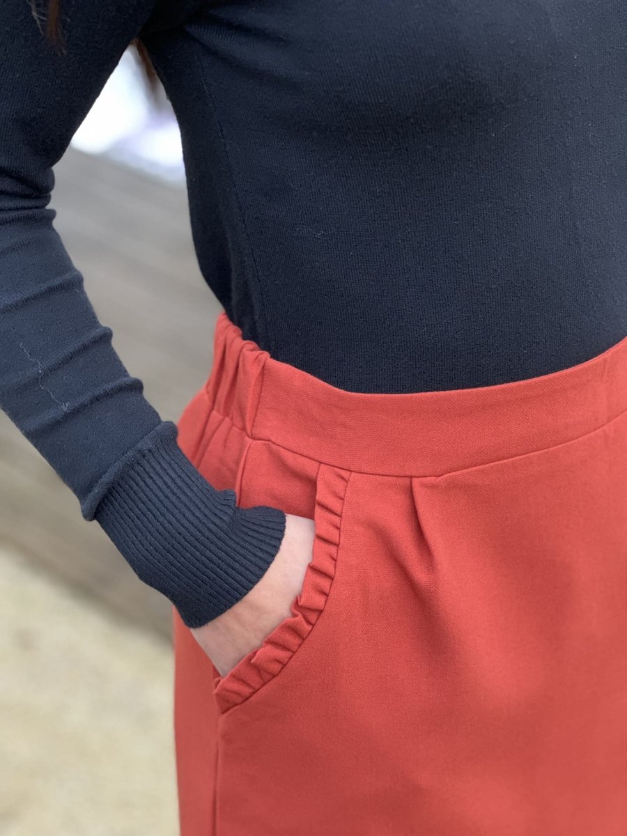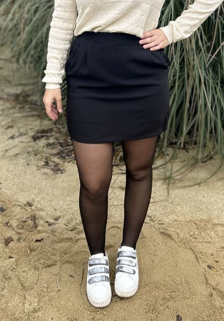 • JUPE DROITE PETIT FROUFROU SUR LES POCHES