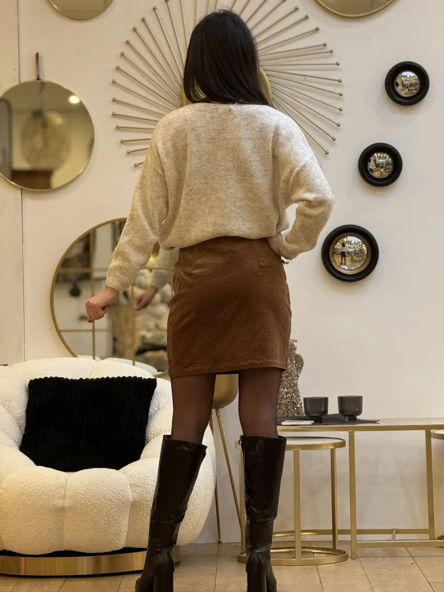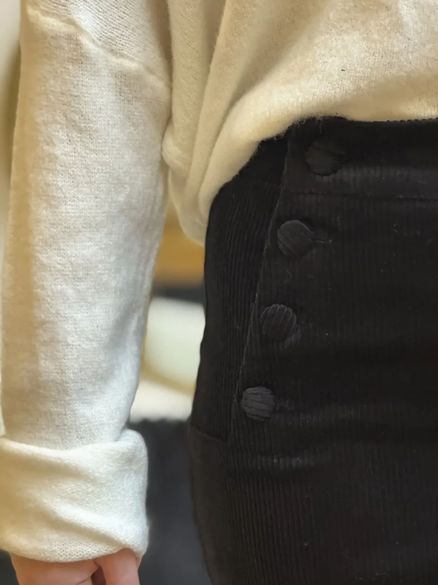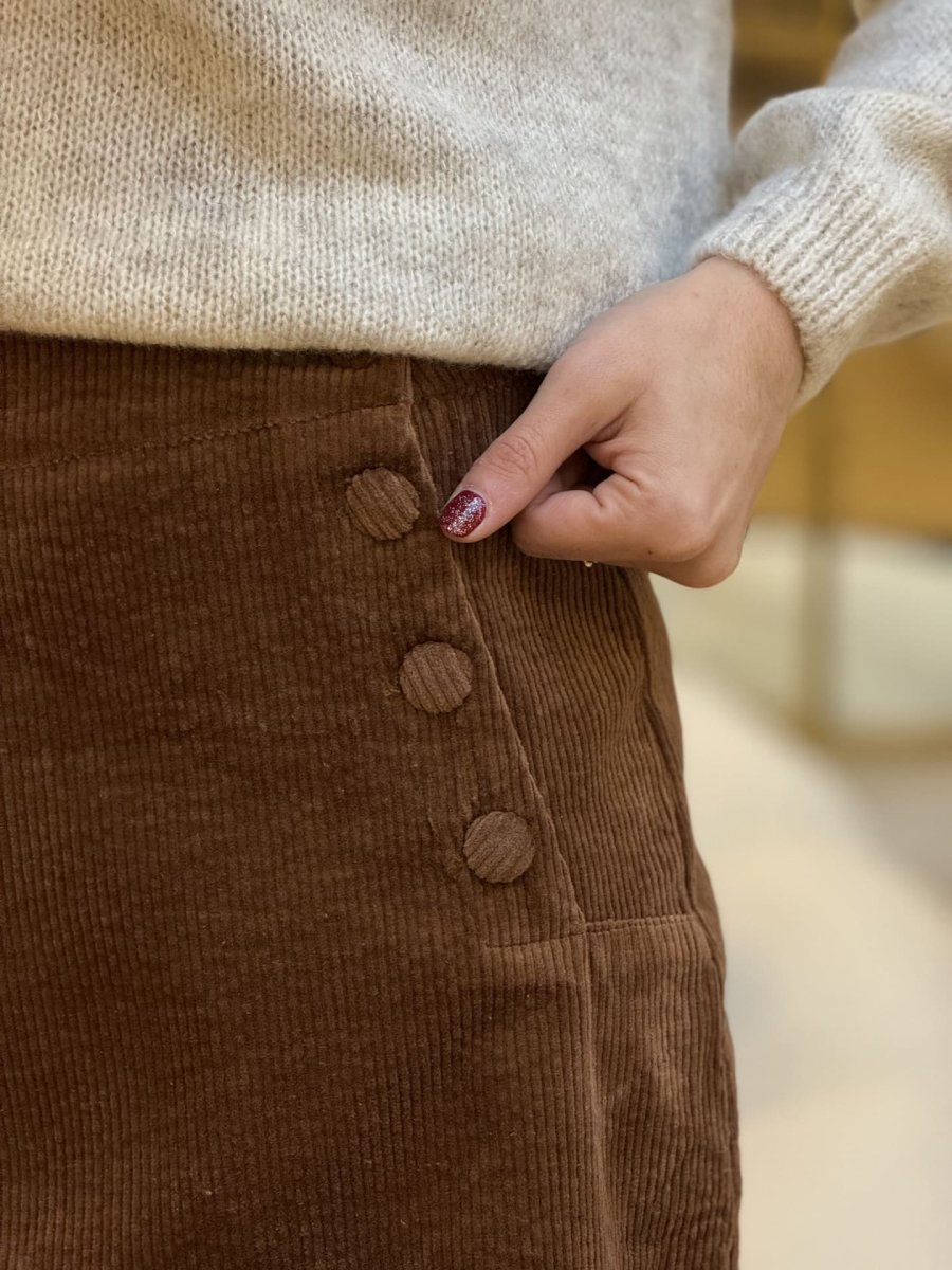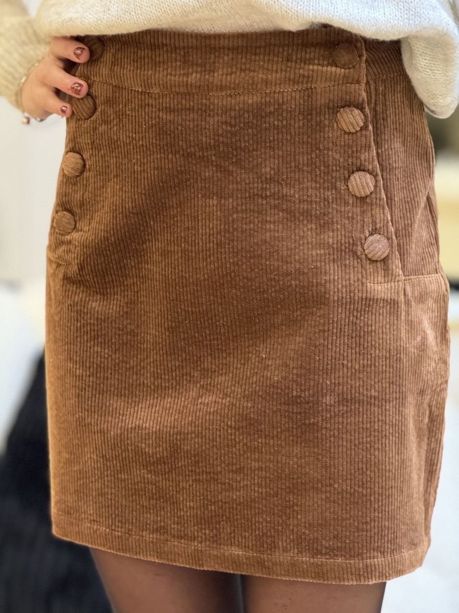 - jupe courte en velours côtelé avec 4 boutons de chaque côté