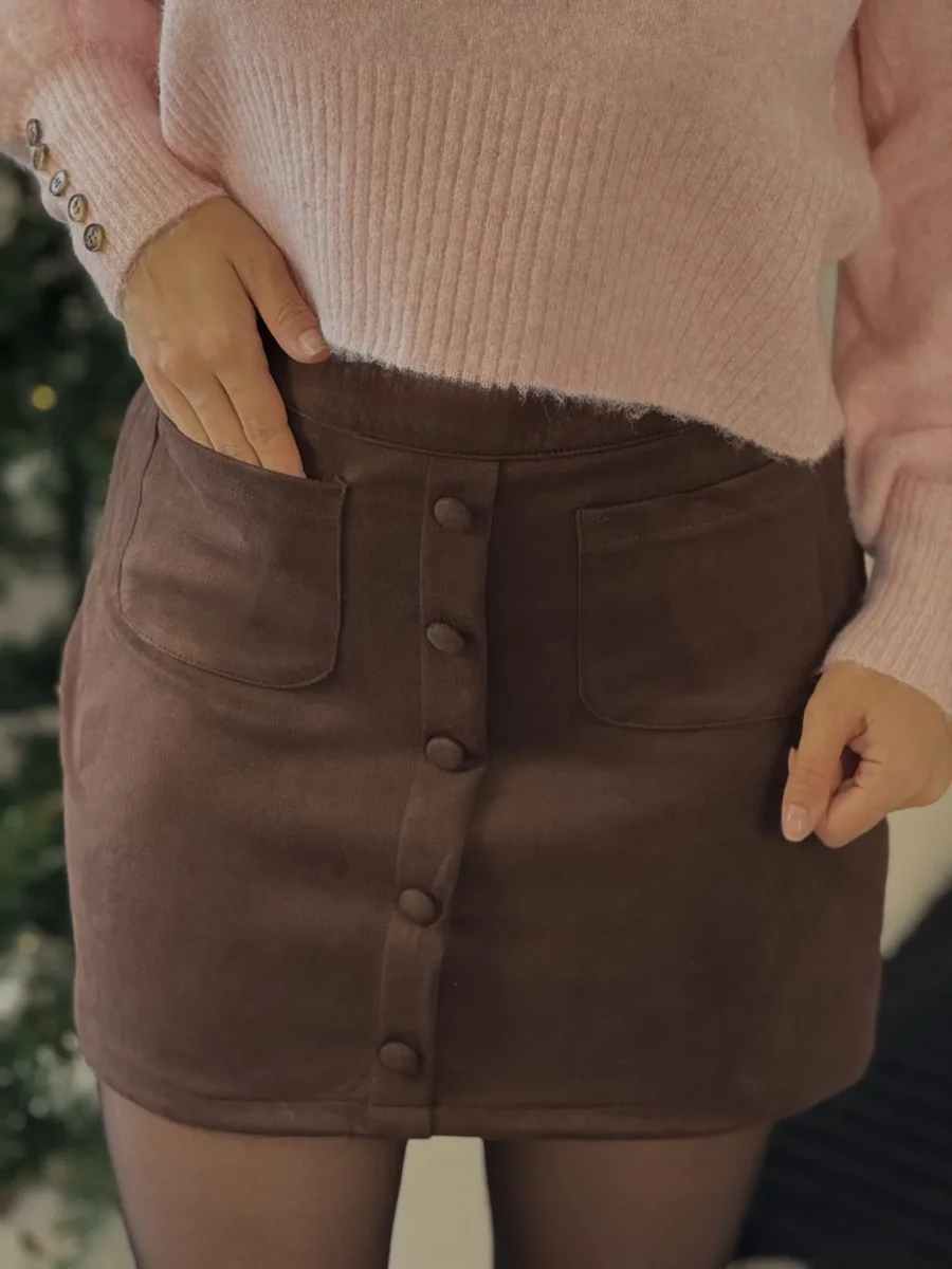 - Jupe courte avec boutons devant + deux poches
