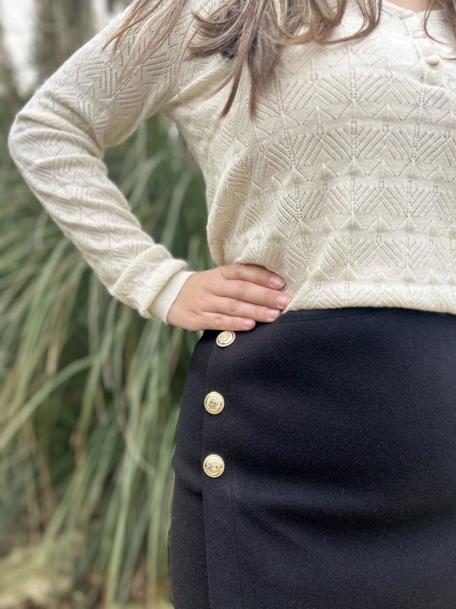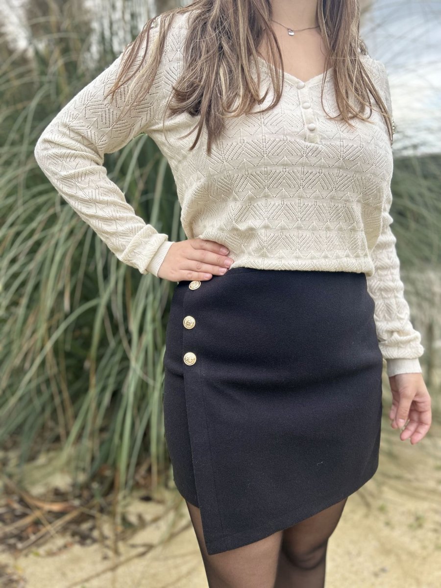 JUPE COURTE avec boutons sur côté asymétrique Taille : Juliette mesure 1m63. Elle porte la taille S pour ce modèle. Taille : S (36) / M (38) / L (40) Composition & entretien : 65% POLYESTER 35% LAINE Lavage à la main conseillé Besoin d’un conseil ? Consultez notre foire aux questions ou contactez-nous via […]