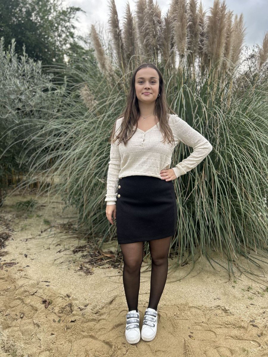 Juliette mesure 1m63. Elle porte la taille S pour ce modèle.