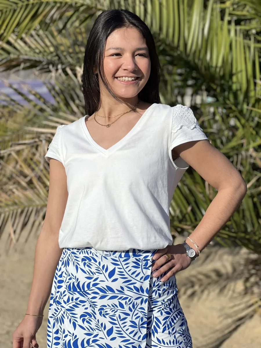 JUPE SHORT IMPRIME FEUILLES Mathilde mesure 1m65. Elle porte la taille S pour ce modèle. Taille : S (36) / M (38) / L (40) Composition & entretien : 85% POLYESTER 15% SPANDEX Lavage à la main conseillé Besoin d’un conseil ? Consultez notre foire aux questions ou contactez-nous via notre formulaire de contact