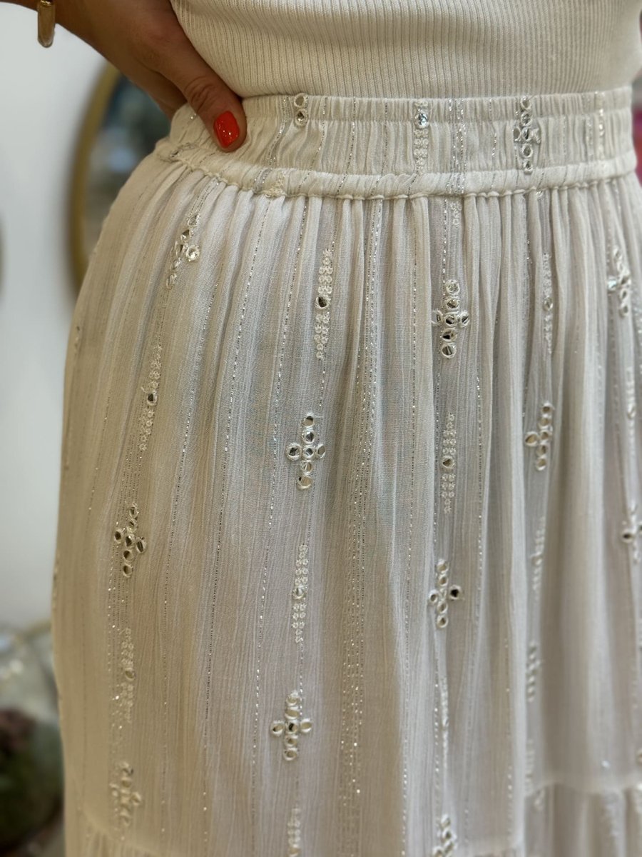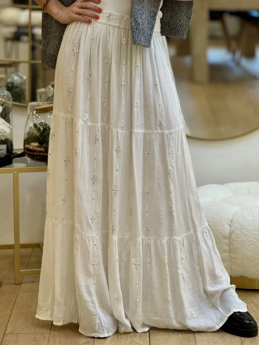 - Jupe longue ave ceinture resserer – imprimer traits et points argenté
