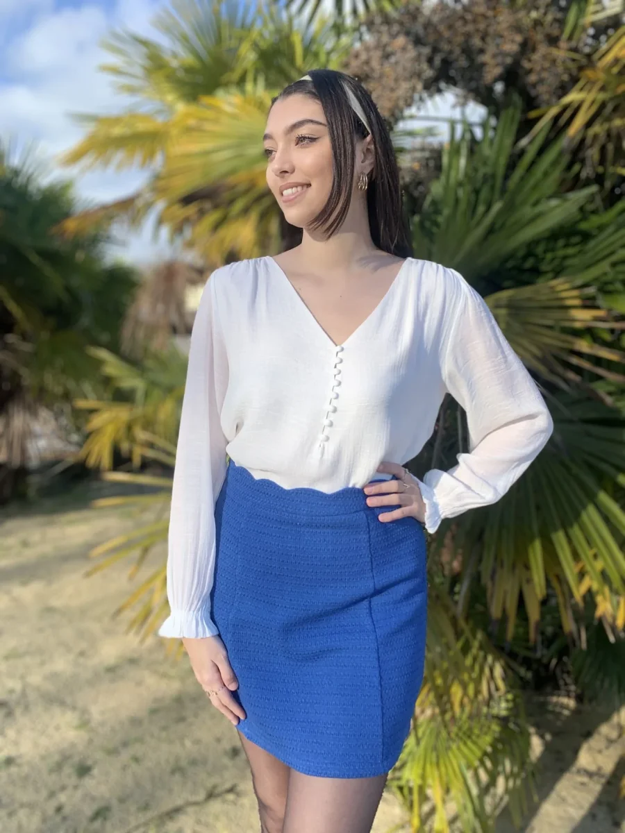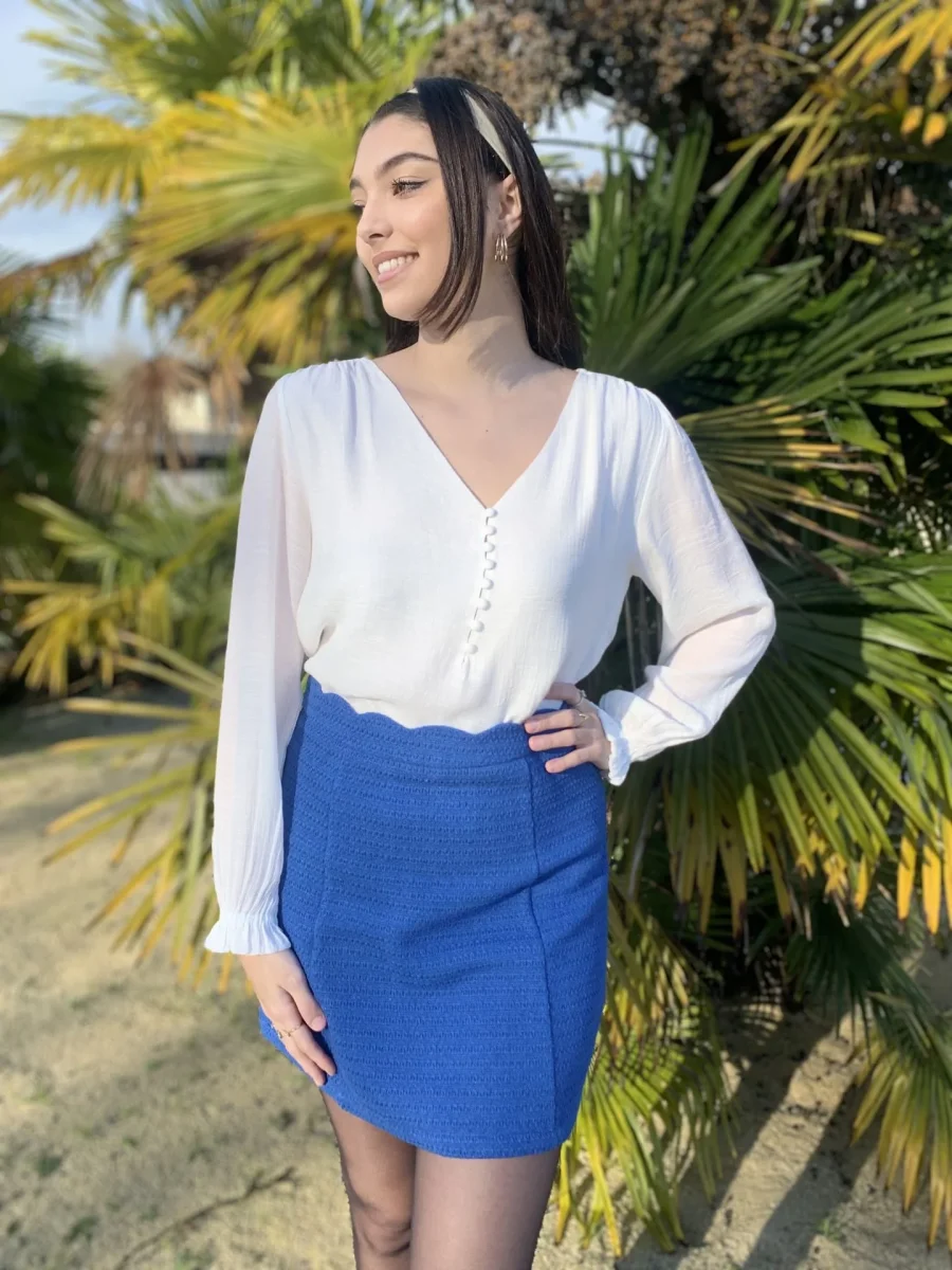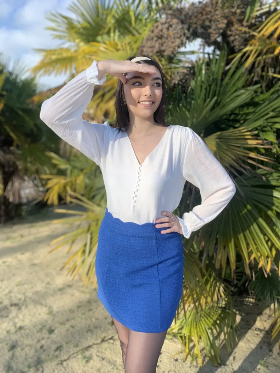 Jupe courte taille vague Maëlys mesure 1m68. Elle porte la taille M pour ce modèle. Taille : XS (34) / S (36) / M (38) / L (40) Composition & entretien : Attente Lavage à la main conseillé Besoin d’un conseil ? Consultez notre foire aux questions ou contactez-nous via notre formulaire de contact