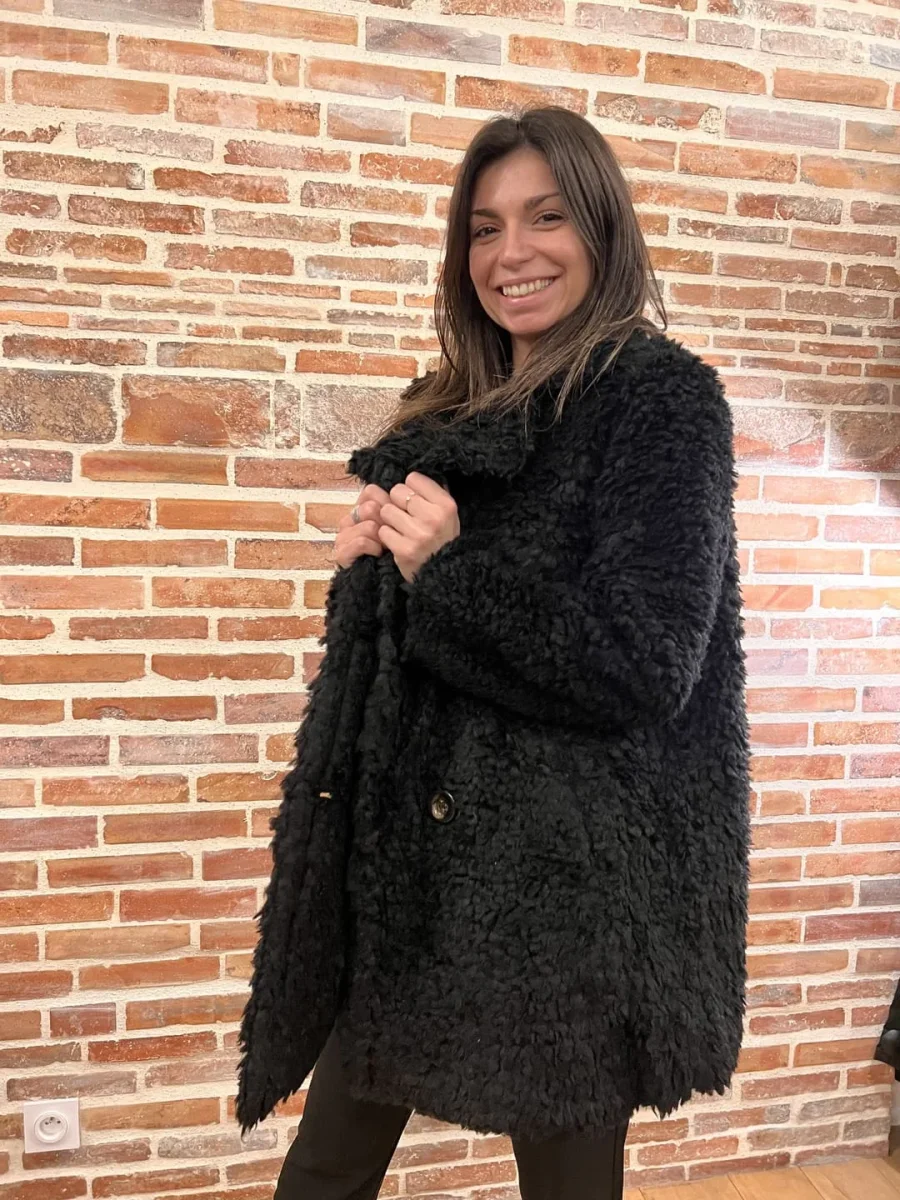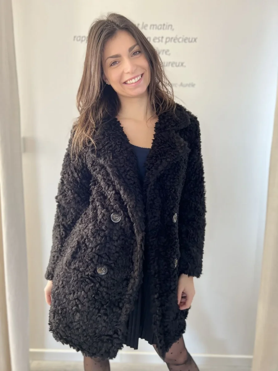 - Manteau court fourrure avec boutons