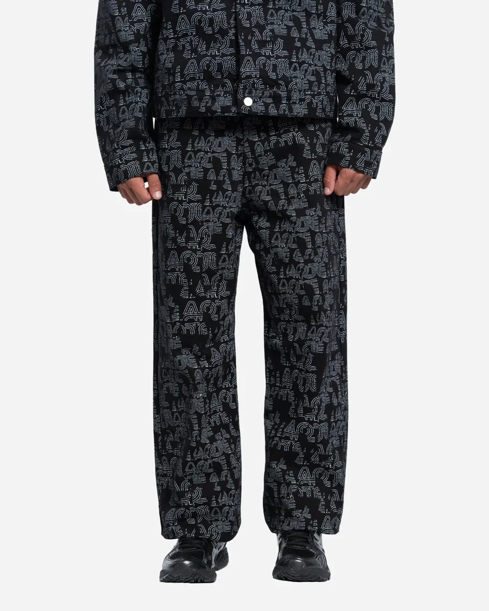 Ce pantalon en jean noire signée Arte se distingue par son imprimé intégral aux motifs graphiques blancs, emblématiques de la collection Automne/Hiver 2025. Il est conçu en coton de qualité supérieure et fabriquée au Portugal.