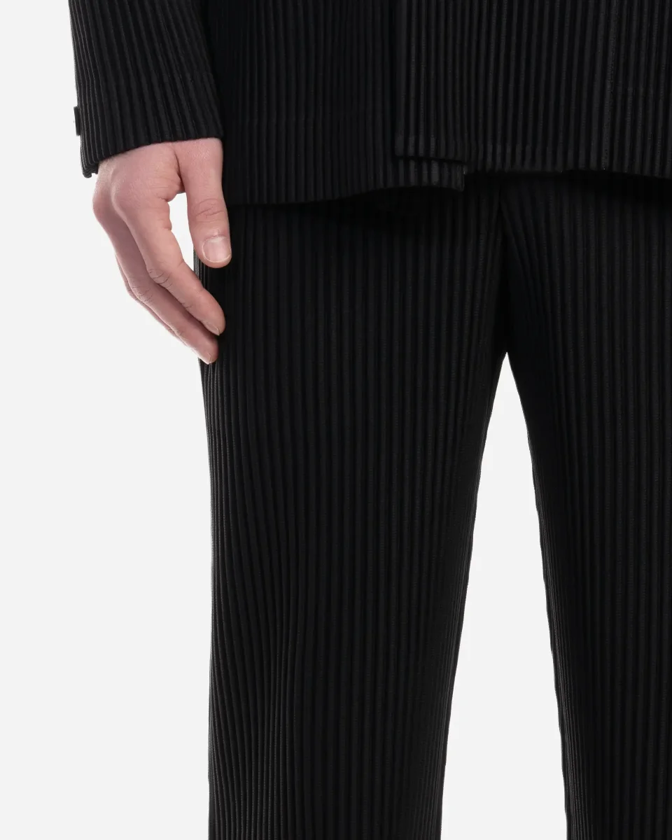 Pantalon, Homme Plissé Issey Miyake, noir, plissé, polyester, coupe droite, braguette boutonnée, passants ceinture, poches latérales