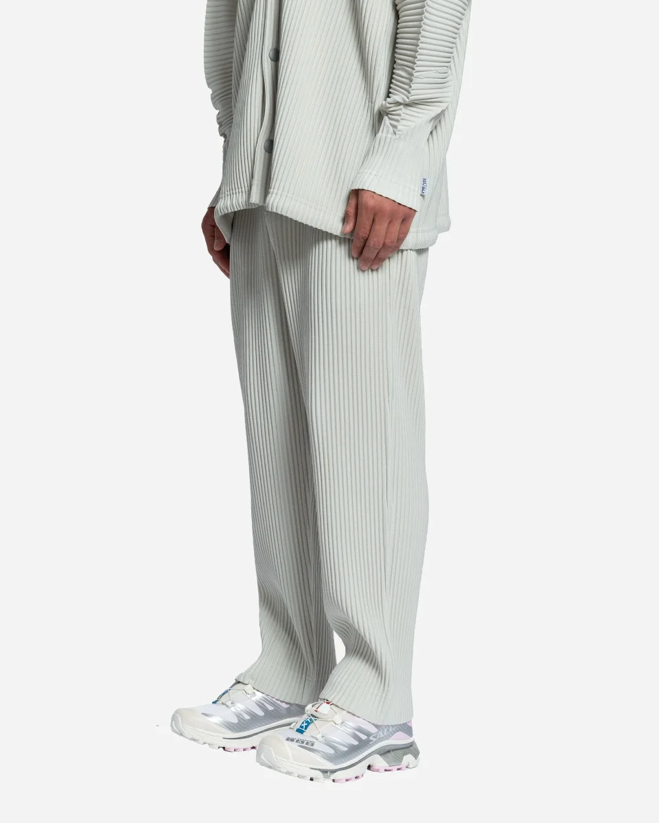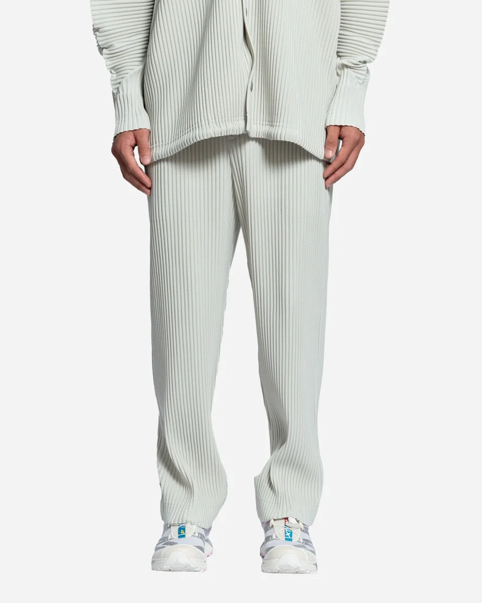 Pantalon droit plissé en polyester, issu de la série MC March. Il présente une taille élastique avec cordon de serrage intérieur, deux poches latérales fendues et une coupe fuselée à cheville, assurant un style moderne tout en conservant le confort signature Homme Plissé.