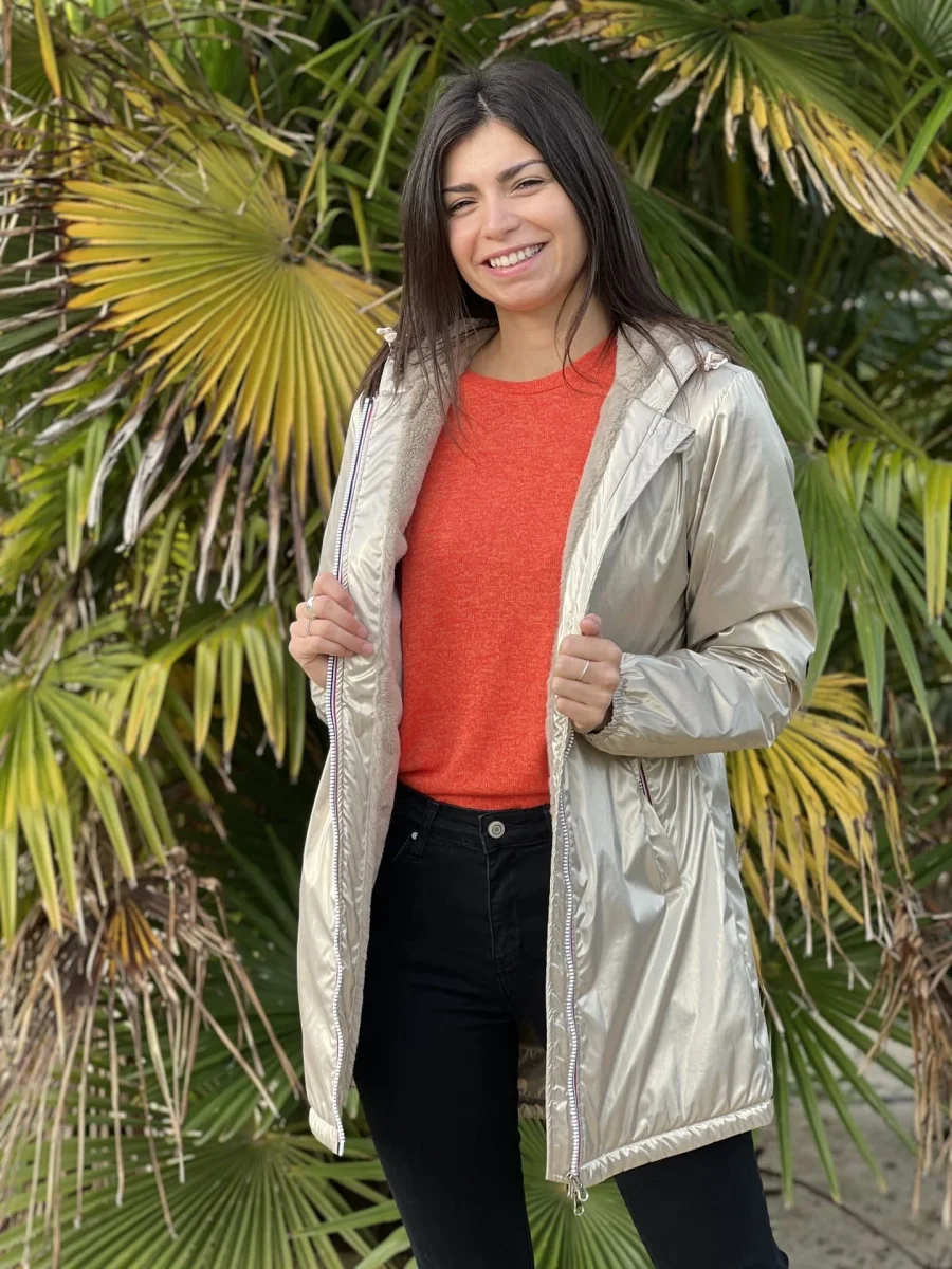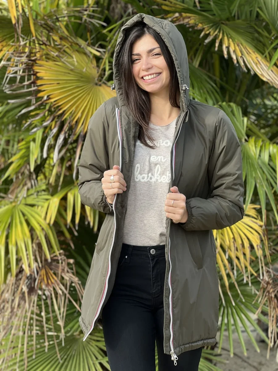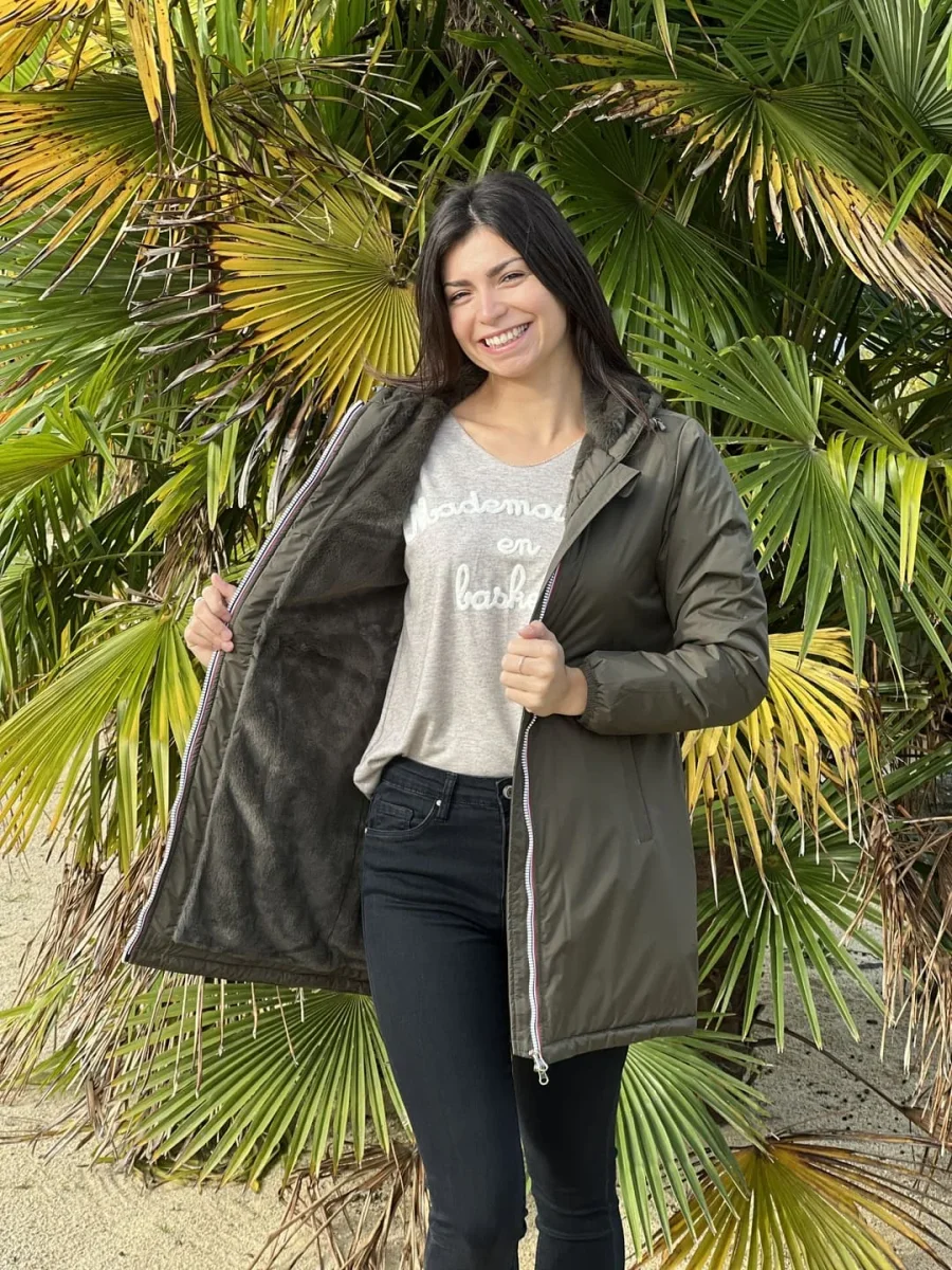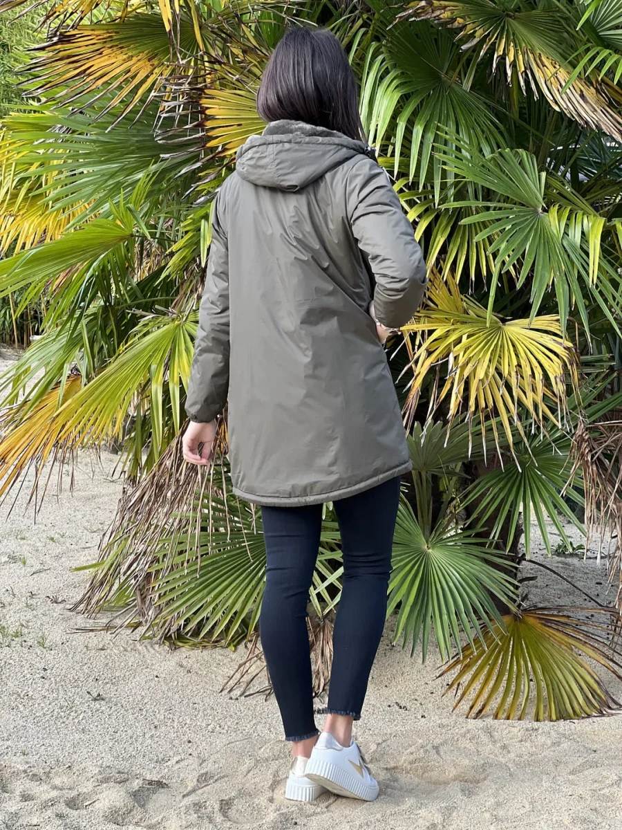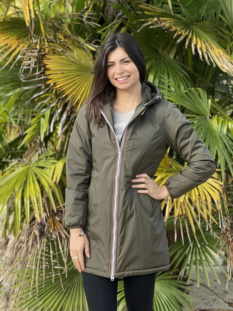 - PARKA LONGUE À CAPUCHE À ML – ZIP + 2 POCHES – FOURURE À L’INTÉRIEUR
