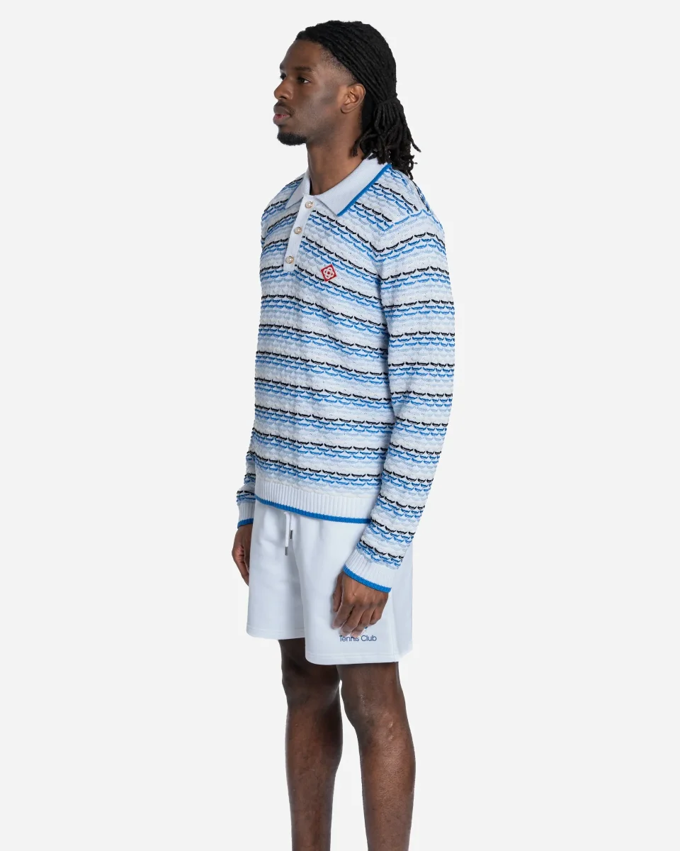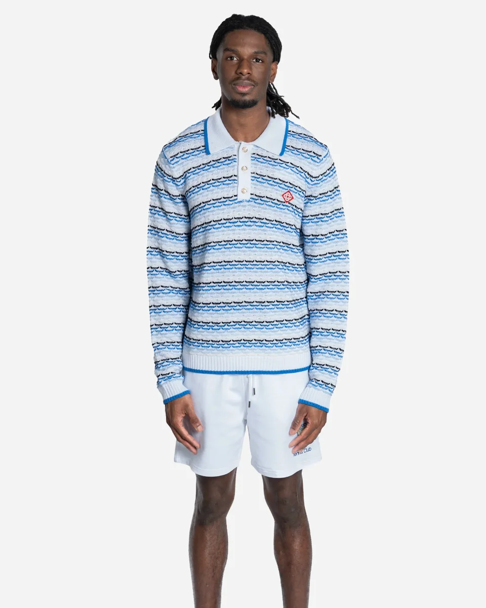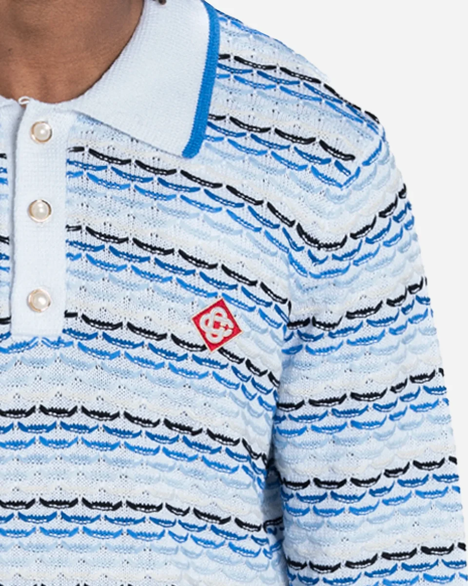 Polo, Casablanca, Coton, Bleu, Point de tricot, Maille, Logo losange, Boutons nacre, Manches longues, Relaxed fit