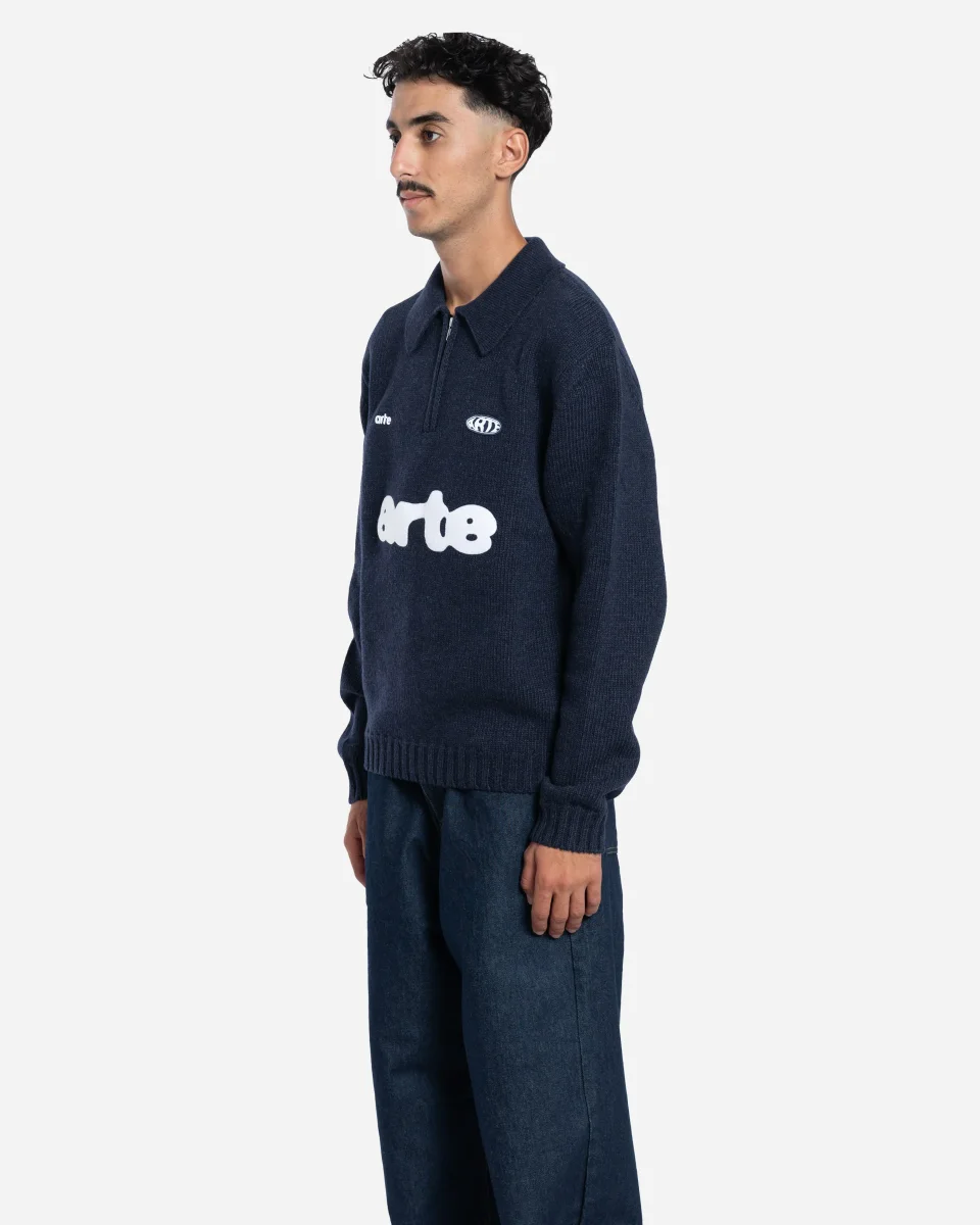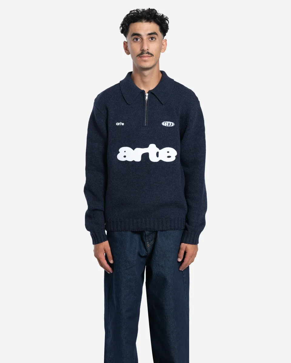 Cardigan à col polo de la marque Arte, confectionné en laine mélangée pour un confort optimal. Son demi-zip sur le devant et ses logos Arte brodés et imprimés en contraste ajoutent une touche graphique et sportive.