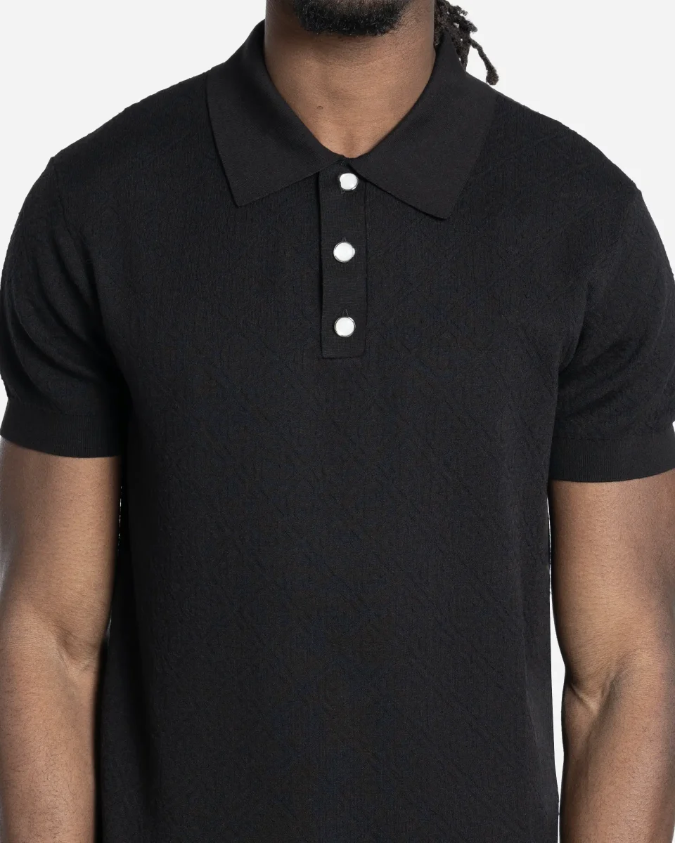 polo, maille, pointelle, monogramme, noir, gris, coton, luxe, slim fit, CC logo, SS26, M-SS26-KW-1295-01.